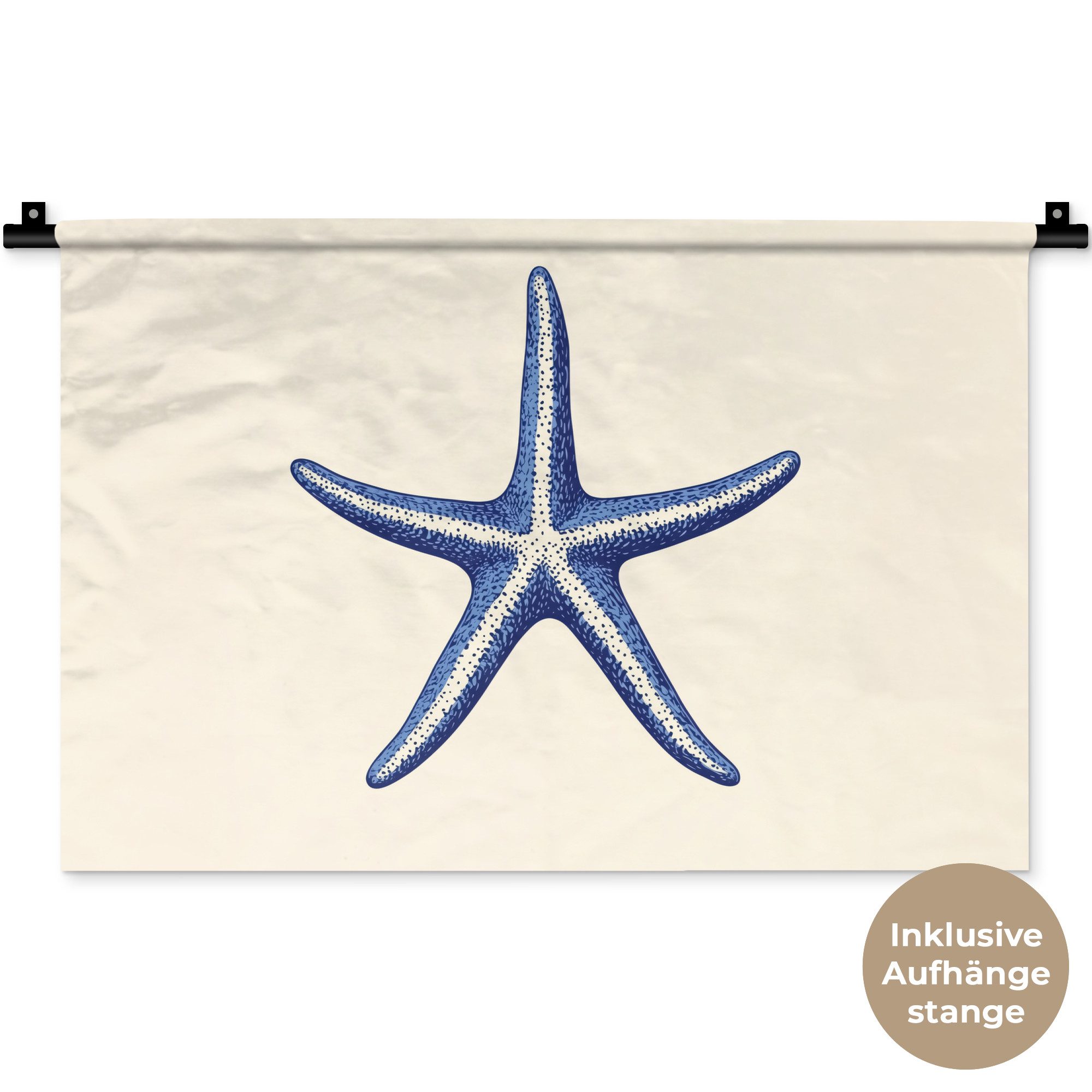 Detaillierter blauer Seestern mit fünf Armen auf beigem Hintergrund.