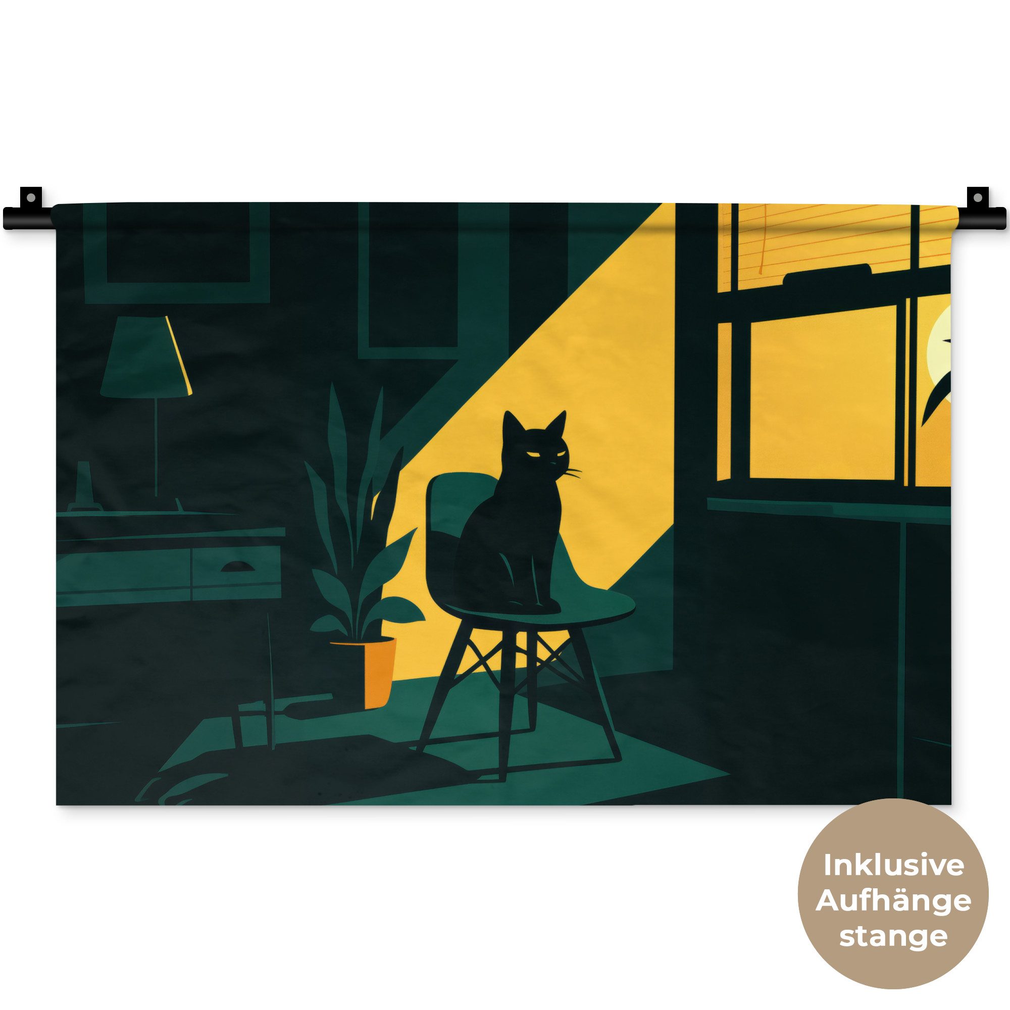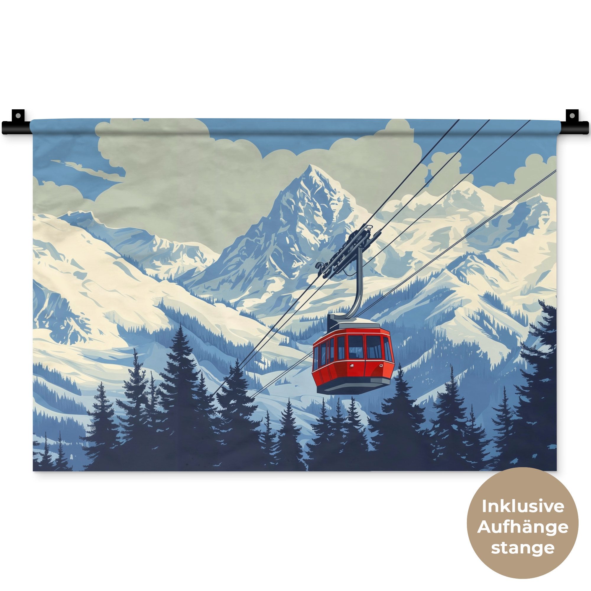 Der Wandteppich besteht aus robustem und strapazierfähigem Material. Er eignet sich hervorragend, um Ihrem Zuhause zusätzliche Atmosphäre und Wärme zu verleihen. Der Druck ist gestochen scharf mit leuchtenden Farben und sorgt für eine beeindruckende Wirkung. Die mitgelieferte Aufhängestange macht das Anbringen besonders einfach.