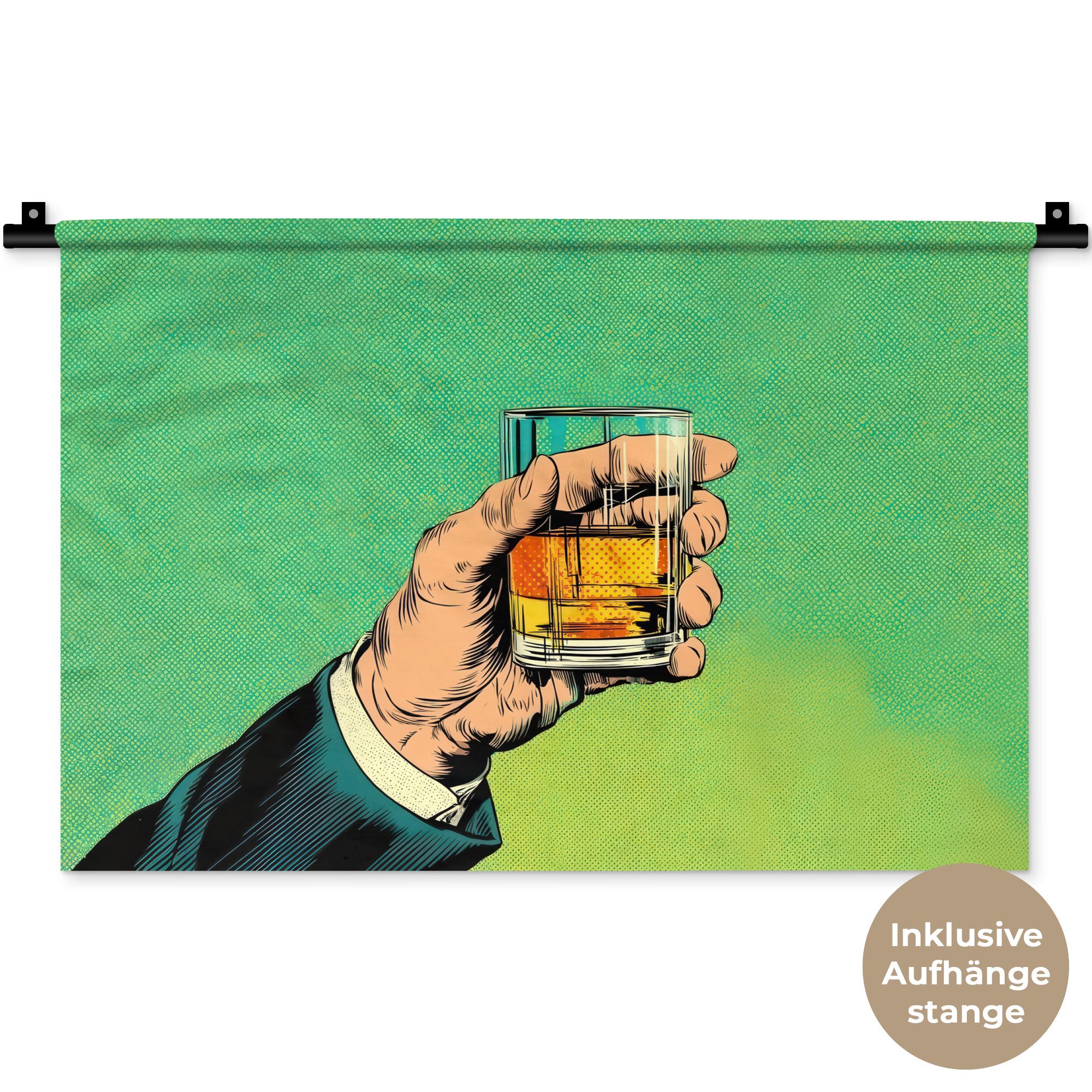 Der Wandteppich besteht aus robustem und strapazierfähigem Material. Er eignet sich hervorragend, um Ihrem Zuhause zusätzliche Atmosphäre und Wärme zu verleihen. Der Druck ist gestochen scharf mit leuchtenden Farben und sorgt für eine beeindruckende Wirkung. Die mitgelieferte Aufhängestange macht das Anbringen besonders einfach.