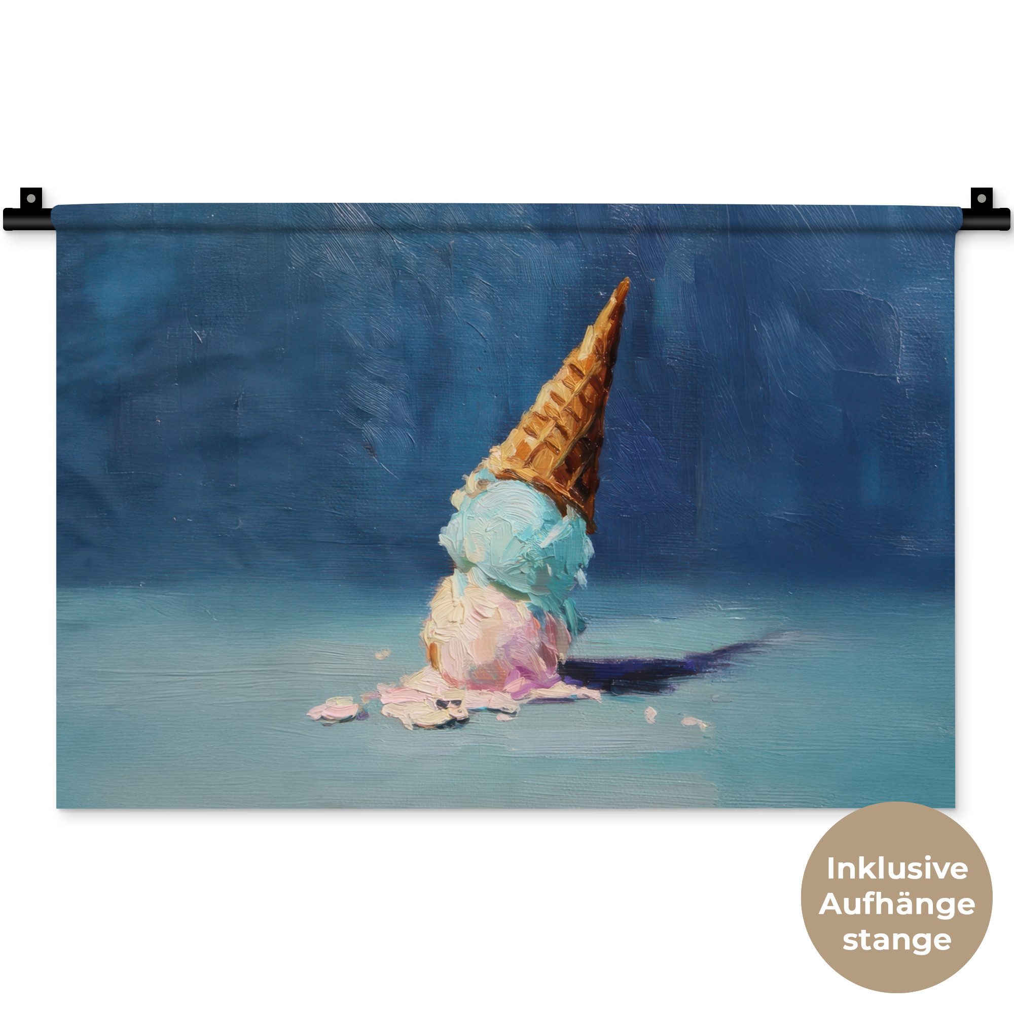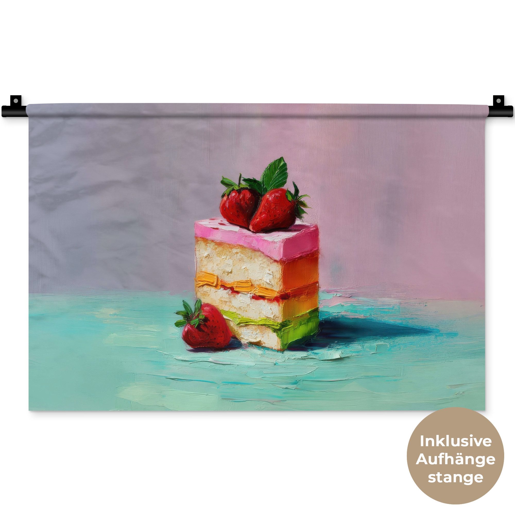 Der Wandteppich besteht aus robustem und strapazierfähigem Material. Er eignet sich hervorragend, um Ihrem Zuhause zusätzliche Atmosphäre und Wärme zu verleihen. Der Druck ist gestochen scharf mit leuchtenden Farben und sorgt für eine beeindruckende Wirkung. Die mitgelieferte Aufhängestange macht das Anbringen besonders einfach.