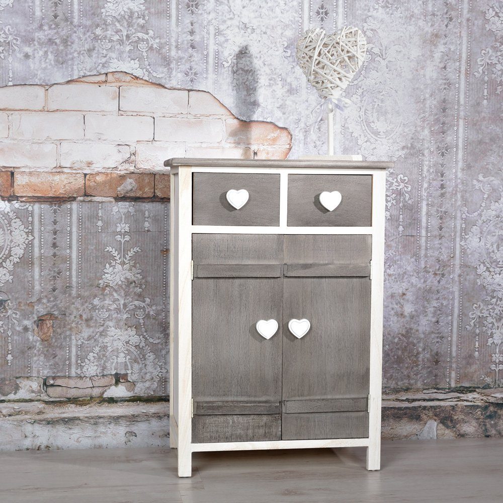 Lieferumfang | 1 x Kommode im verspielten Design, Farbe Weiß/Grau, inkl. 2 Schubkästen und 2 Türen |