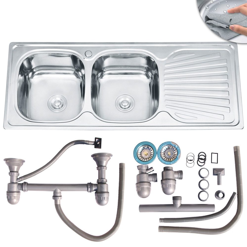 Ergänzen Sie Ihre Küche mit Stil und Funktionalität – unserer Edelstahl Doppel Einbauspüle Links mit Ablage Rechts. Entdecken Sie eine praktische Lösung, die Ihnen in der Küche das Leben erleichtert. Investieren Sie in hochwertige Qualität und bestellen Sie noch heute Ihre neue Einbauspüle.
