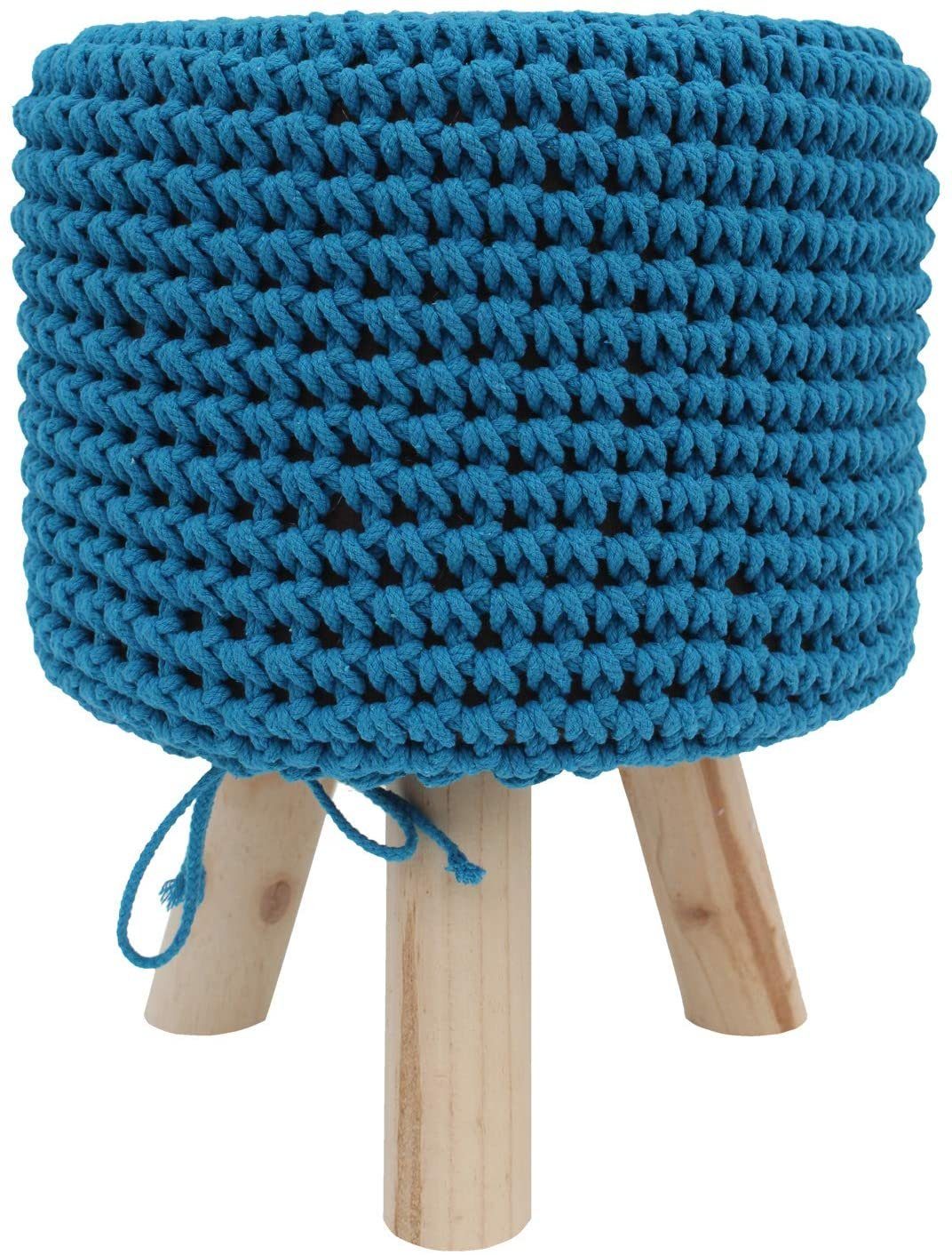 Mucola Sitzhocker Sitzhocker Hellblau Holz Strickpolster Stoff Sitzpouf Holzfuß Sitzbank (Stück, 1 St., Premium-Sitzhocker), Strickpolster