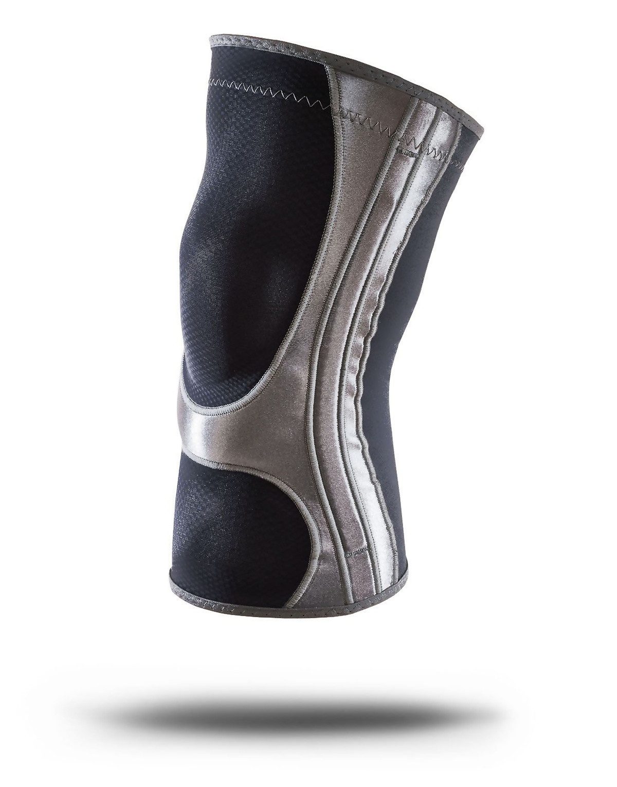 Die Hg80 Knee Support Kniebandage von Mueller Sports Medicine ist eine Впередentwicklung herkömmlicher Kniebandagen. Die Materialien sind extrem hautfreundlich, latexfrei und haben ultradünne Stabilisierungselemente verarbeitet. Besonders das eingepasstes Gelkissen gegen Schmerzen entlang und unterhalb der Kniescheibe und dünne Federstabilisatoren auf beiden Seiten bieten hervorragende Stabilität und ein gutes Tragegefühl. Durch die Schnittform der Bandage wird eine minimierte Faltenbildung und kein Einschnüren an den Rändern erzielt. Das kühlende neue Gewebe, mit mikrobilogischer Grenzschicht, verhindert die Bildung von Mikroben, Gerüchen und Flecken. Die Bandage kann ganztägig getragen werden. Die Bündchen sind verstärkt und durch leichte Kompression wird eine perfekte Passform um das Knie erreicht.