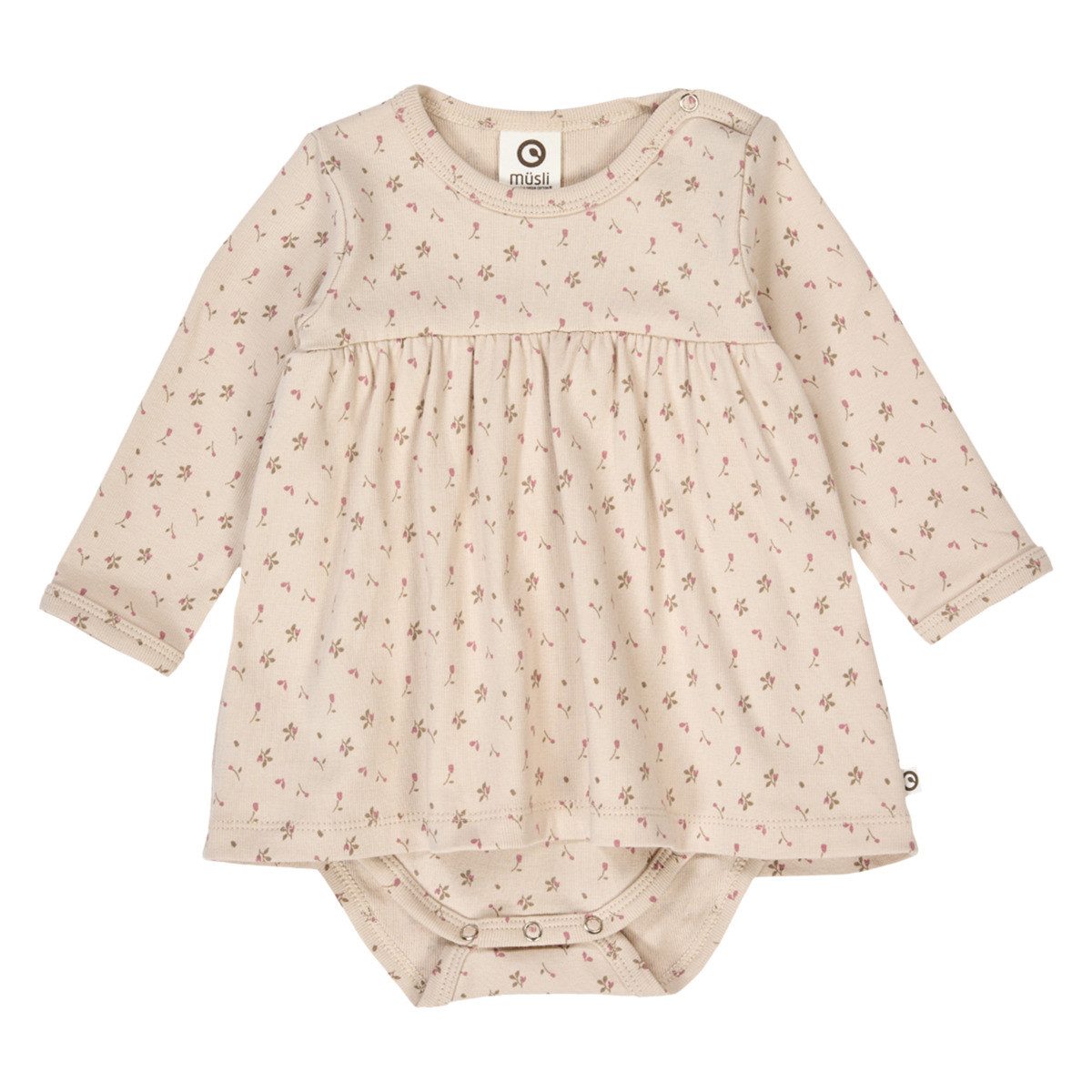 Entdecke unser wundervolles Bodykleid mit zartem Allover Print! Der cremefarbene 2x2 Rib Stoff mit einem filigranen Print von vielen Blüten in zartem rosa aus 95% Baumwolle mit 5% Elasthan lässt sich wunderbar zu unseren einfarbigen Leggings aus der Cozy Me Kollektion kombinieren. Der Body des Kleides öffnet sich am Halsausschnitt und unten mit Druckknöpfen, was das An- und Ausziehen erleichtert und für zusätzlichen Komfort sorgt. Dank des Elasthan Anteils sitzt das Kleid perfekt ohne deinen kleinen Schatz einzuengen. Das Bodykleid ist perfekt geeignet für Anlässe, an denen du dein Baby besonders festlich kleiden möchtest GOTS Standard. Zertifiziert durch Ecocert Greenlife Lic. No. 151714 Das Produkt ist GOTS Organic zertifiziert. Dies ist aktuell der höchste Standard für Bekleidung. Все Produktionsprozesse wie Färben, Weben und Nähen werden unter strengsten Vorgaben mit Rücksicht auf die Umwelt durchgeführt. Auch die Arbeitsbedingungen werden während der einzelnen Produktionsschritte streng überwacht.