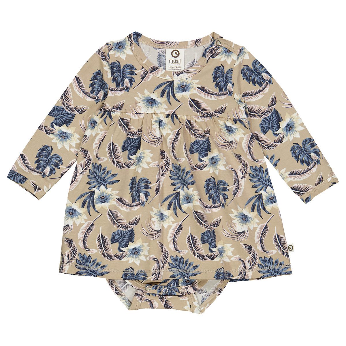 Mit seinen langen Ärmeln und dem feinen Rock ist das Bodykleid perfekt für kleine Mädchen, die sich für besondere Anlässe besonders hübsch machen möchten. Ein Allover-Print von Lilien ziert das Kleid, das sich sowohl am unteren Ende als auch am Halsausschnitt mit Druckknöpfen öffnen lässt. Diese praktische Öffnung erleichtert nicht nur das An- und Ausziehen, sondern auch das Windelwechseln. Hergestellt aus weichem und elastischem Single-Jersey mit Elasthan bietet das Bodykleid eine bequeme Passform und ermöglicht uneingeschränkte Bewegungsfreiheit. Die hochwertige Materialwahl garantiert zudem Langlebigkeit und Formstabilität, selbst nach häufigem Tragen und Waschen. (GOTS Standard. Zertifiziert durch Ecocert Greenlife Lic. No. 151714). Das Produkt ist GOTS Organic zertifiziert. Dies ist aktuell der höchste Standard für Bekleidung. Все Produktionsprozesse wie Färben, Weben und Nähen werden unter strengsten Vorgaben mit Rücksicht auf die Umwelt durchgeführt. Auch die Arbeitsbedingungen werden während der einzelnen Produktionsschritte streng überwacht.