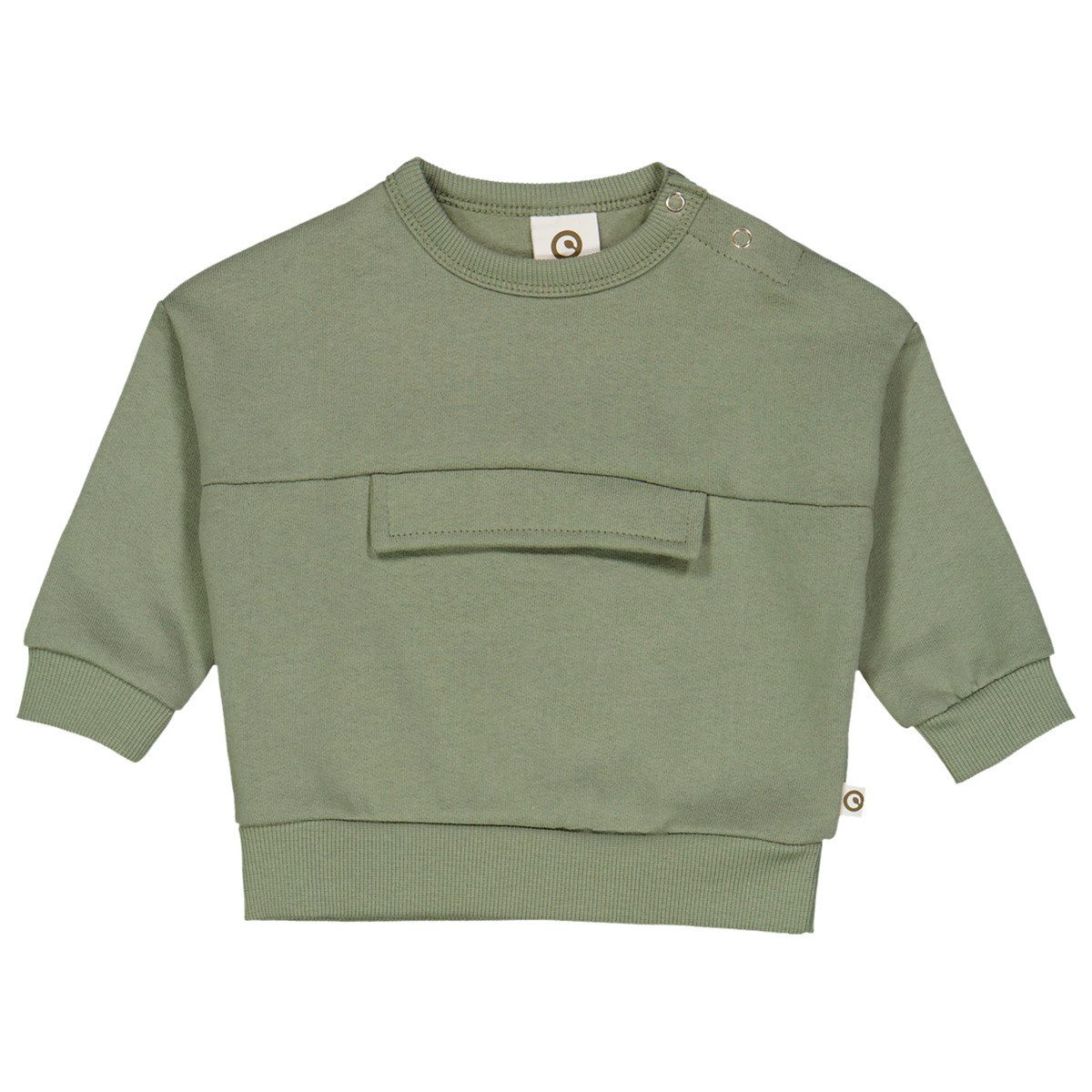 Unser Sweatshirt präsentiert sich in einem sanften Moosgrün und verfügt über eine große Tasche auf Bauchhöhe, die nicht nur praktisch ist, sondern dem Shirt auch einen charmanten Touch verleiht. Das Sweatshirt ist nicht nur niedlich anzusehen, sondern auch äußerst praktisch. Mit einem bequemen Rundhalsausschnitt und einer großzügigen Tasche bietet es höchsten Tragekomfort für Ihr Baby. Der praktische Druckknopfverschluss im Nackenbereich erleichtert das An- und Ausziehen und sorgt für eine optimale Passform. Die Innenseite des Sweatshirts ist gebürstet, was es besonders weich und angenehm zu tragen macht. Hergestellt aus 100% gebürsteter Baumwolle bietet unser Babysweatshirt nicht nur eine angenehme Passform, sondern auch eine wunderbar weiche und kuschelige Trageerfahrung. Unser süßes und praktisches Babysweatshirt ist die ideale Wahl für stilbewusste Eltern, die Wert auf Qualität und Komfort legen. Gönnen Sie Ihrem Baby das Vergnügen von stilvoller und bequemer Kleidung mit unserem Shirt! GOTS Standard. Zertifizert durch Ecocert Greenlife Lic. No. 152033 Das Produkt ist GOTS Organic zertifiziert. Dies ist aktuell der höchste Standard für Bekleidung. Все Produktionsprozesse wie Färben, Weben und Nähen werden unter strengsten Vorgaben mit Rücksicht auf die Umwelt durchgeführt. Auch die Arbeitsbedingungen werden während der einzelnen Produktionsschritte streng überwacht.