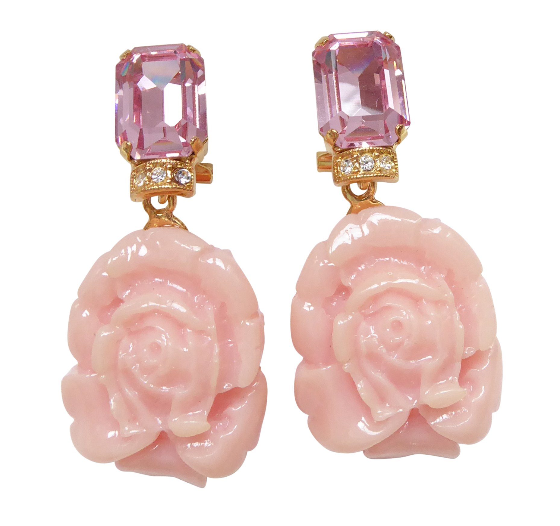 Auffällige Ohrclips von JustWin mit einem facettierten Stein, der in einem hellen Pink leuchtet, und mit einem rosa Anhänger in Rosenform. Der Stein besteht aus Acryl, der Anhänger aus Resinat. Bei dem Material der schönen Ohrringe handelt es sich um eine Metalllegierung mit einer Gelbvergoldung. Das Material ist antiallergen und sehr gut verträglich. Diese stylischen, hübschen Clips sind ein absoluter Hingucker! Hinter dem Label „JustWin“ stehen die beiden Designer Kurt Justmann und Paul Winter, die modischen, glamourösen Statement-Schmuck für Frauen entwerfen, die voluminöse und bunte Designs lieben. Die extravaganten, handgearbeiteten Kreationen sind ein eleganter Blickfang und spielen mit auffälligen, fröhlichen Farben, Formen und Oberflächen. Der hochwertige, stilvolle Modeschmuck ist bereits auf der Titelseite der deutschen VOGUE zu bewundern gewesen und erscheint regelmäßig in der Presse. Liebhaberinnen von Statement-Ohrringen in vielen verschiedenen Trend-Farben werden bei JustWin nicht widerstehen können! Moderner, edler und individueller Mode-Stil für jedes Outfit. Die schicken und gleichzeitig auch klassischen Designer-Ohrringe werten jeden Look auf, egal bei welcher Gelegenheit: ob im Büro, in der Freizeit, im Urlaub oder bei einem festlichen Anlass wie einer Feier, Party, Ball, Hochzeit, Konfirmation, Oktoberfest etc. Sie werden gerne zusammen mit einem Dirndl als ausgefallenes Trachten-Schmuckstück getragen. Dieser tolle Bestseller ist auch ein wunderbares Geschenk zum Geburtstag, Weihnachten, Hochzeitstag, Valentinstag oder dergleichen und ein besonderes Must-Have für Frauen und Mädchen. Maße der Ohrringe: Höhe: 5,0 cm, Breite: 2,5 cm.