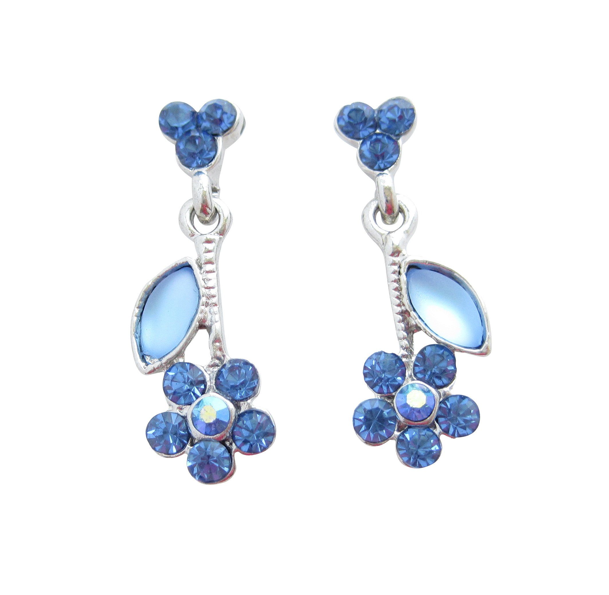 Ein schöner Hingucker: Funkelnde blaue Blumen-Ohrstecker aus Strass, bei denen die Steine in Handarbeit eingesetzt worden sind. Die Metalllegierung (Tombak) der hängenden Ohrringe ist antiallergen und sehr gut verträglich. Auch toll als Abendohrringe! Diese hübschen, glitzernden Stecker liegen absolut im Trend und werten jedes Outfit auf, egal bei welcher Gelegenheit: ob in der Freizeit, im Büro und Business oder für einen festlichen Anlass wie eine Feier, Party, Hochzeit, Silvester oder einen Ball. Auch ein wunderbares Geschenk für Mädchen und Frauen zum Geburtstag, zu Weihnachten, zur Konfirmation oder zum Valentinstag. Dieses modische Fashion-Accessoire ist ein absolutes Must-Have! Maße der Ohrringe: Длина: 3,1 cm, Breite 1,1 cm.