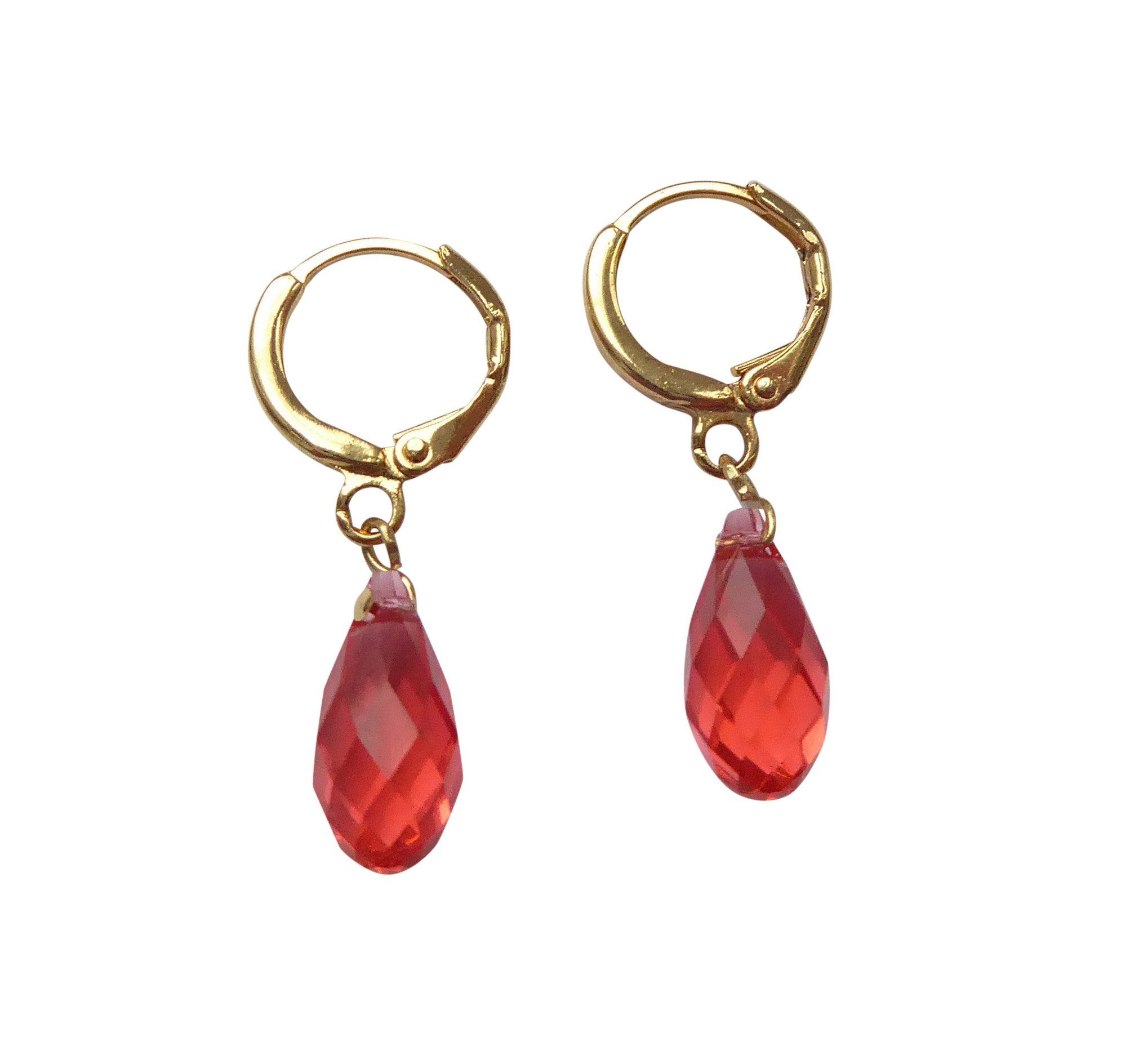 Die funkelnden Ohrhänger haben einen facettierten tropfenförmigen Anhänger aus Kristallglas, der in einem schönen Rosa-Orange-Ton funkelt. Die hübschen Ohrringe werden in liebevoller Handarbeit in Deutschland gefertigt und sind sehr leicht und angenehm zu tragen. Sie haben einen verschließbaren Creolen-Verschluss, der ein Verlieren der Ohrringe verhindert. Die Ohrringe bestehen aus einer Metalllegierung mit einer Gelbvergoldung und sind antiallergen und sehr gut verträglich. Ein Must-Have für Liebhaberinnen von glitzerndem Schmuck! Diese modischen und zeitlosen Ohrhänger liegen absolut im Trend. Die hochwertig gearbeiteten Ohrringe werten jeden Look auf und sind wegen ihrer Размер besonders im Alltag gut einsetzbar – egal ob im Büro oder in der Freizeit zum sportlichen Casual-Look. Aber wegen ihres Glanzes und Funkelns sind sie auch wunderbar für einen festlichen Anlass wie zum Beispiel ein Fest, eine Hochzeit, ein Ball zum eleganten Abendkleid oder auch eine legere Party einsetzbar. Diese schicken, stilvollen Basic-Ohrringe sind auch ein trendiges Geschenk zum Geburtstag, Weihnachten, Konfirmation oder Valentinstag für Frauen und Mädchen. Ein klassisches, edles und modernes Fashion-Accessoire und ein schöner Allrounder für Frühling, Sommer, Herbst und Winter! Maße der Ohrringe: Gesamthöhe: 2,8 cm, Höhe (Anhänger): 1,1 cm, Breite: 0,7 cm.