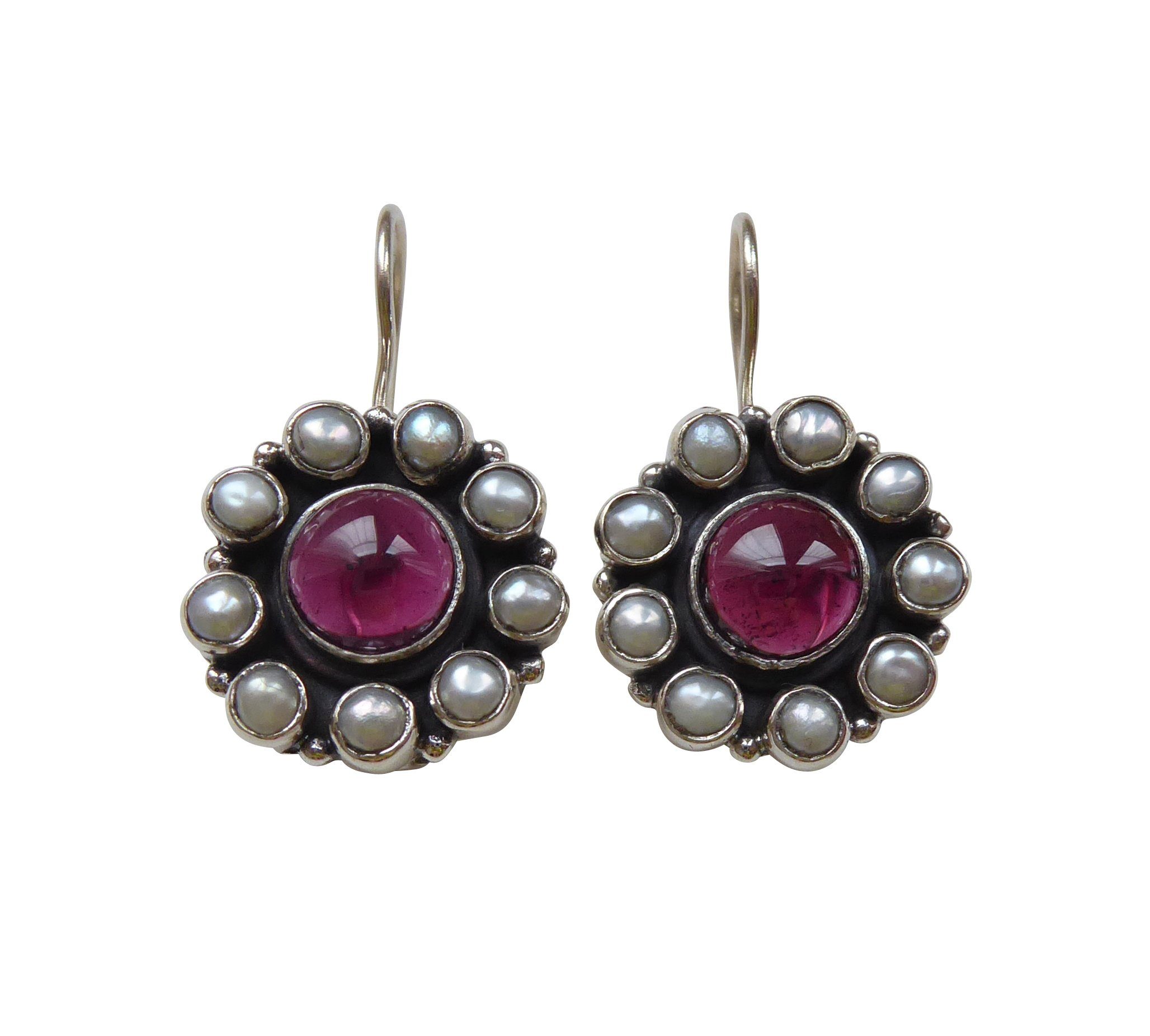 Elegante, historisch inspirierte Perlen-Ohrringe mit einem roten Granat und einem Kranz von kleinen Süßwasserperlen. Das Material dieser hochwertigen Ohrhänger ist Silber, antiallergisch und gut verträglich. Die Granat-Ohrringe sind hinten mit einem Haken verschließbar. Diese edlen, eleganten Vintage-Ohrringe werden in Florenz in einer kleinen Schmuck-Werkstatt in liebevoller und aufwendiger Handarbeit gefertigt, so dass jedes dieser außergewöhnlichen Schmuckstücke ein einzigartiges Unikat ist. Daher sind kleine Abweichungen zu dem Bild möglich. Die hübschen und hochwertigen Ohrringe sind inspiriert durch historischen, klassischen Schmuck von Renaissance-Gemälden aus den Uffizien. Es liegt ganz im Trend, dass Ohrringe auf alt gemacht werden und antik und nostalgisch wirken. Durch ihr zeitlos schönes Design im Antik-Look bzw. Retro-Look sind sie besonders geeignet als wunderschönes Geschenk zum Geburtstag, Weihnachten, Konfirmation oder Valentinstag für Frauen oder Mädchen mit Stil und Anspruch. Maße der Ohrringe: Höhe (ohne Gehänge): 1,7 cm, Breite: 1,7 cm.