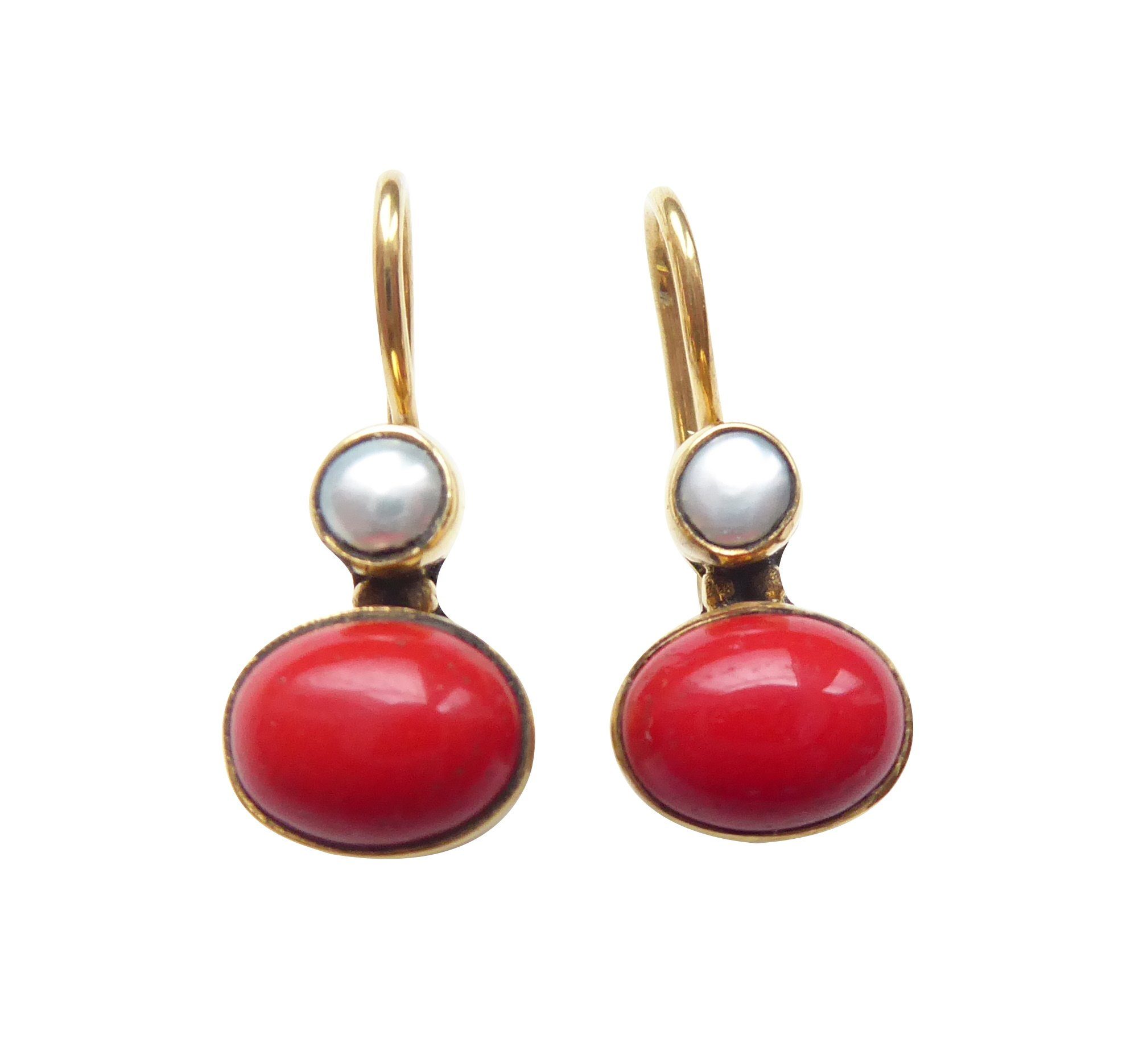 Klassische, niedliche Ohrringe mit einer rot-orangen Koralle und einer kleinen Süßwasser-Zuchtperle. Das Material dieser hochwertigen Granatohrringe ist Silber vergoldet und ist antiallergisch und gut verträglich. Die Ohrringe sind hinten mit einem Haken verschließbar. Durch die relativ kleine Размер sind diese Ohrhänger sehr angenehm zu tragen und der ideale Begleiter für jeden Tag. Diese edlen, eleganten Vintage-Ohrringe werden in Florenz in einer kleinen Schmuck-Werkstatt in liebevoller und aufwendiger Handarbeit gefertigt, so dass jedes Schmuckstück ein einzigartiges Unikat ist. Daher sind kleine Abweichungen zu dem Bild möglich. Die Ohrringe sind inspiriert durch historischen, klassischen Schmuck von Renaissance-Gemälden aus den Uffizien. Durch ihr außergewöhnliches Design im Antik- und Retro-Look sind sie besonders geeignet als Geschenk zum Geburtstag, Weihnachten, Konfirmation oder Valentinstag für Frauen oder Mädchen. Maße der Ohrringe: Höhe (ohne Gehänge): 1,4 cm, Breite: 1,0 cm.