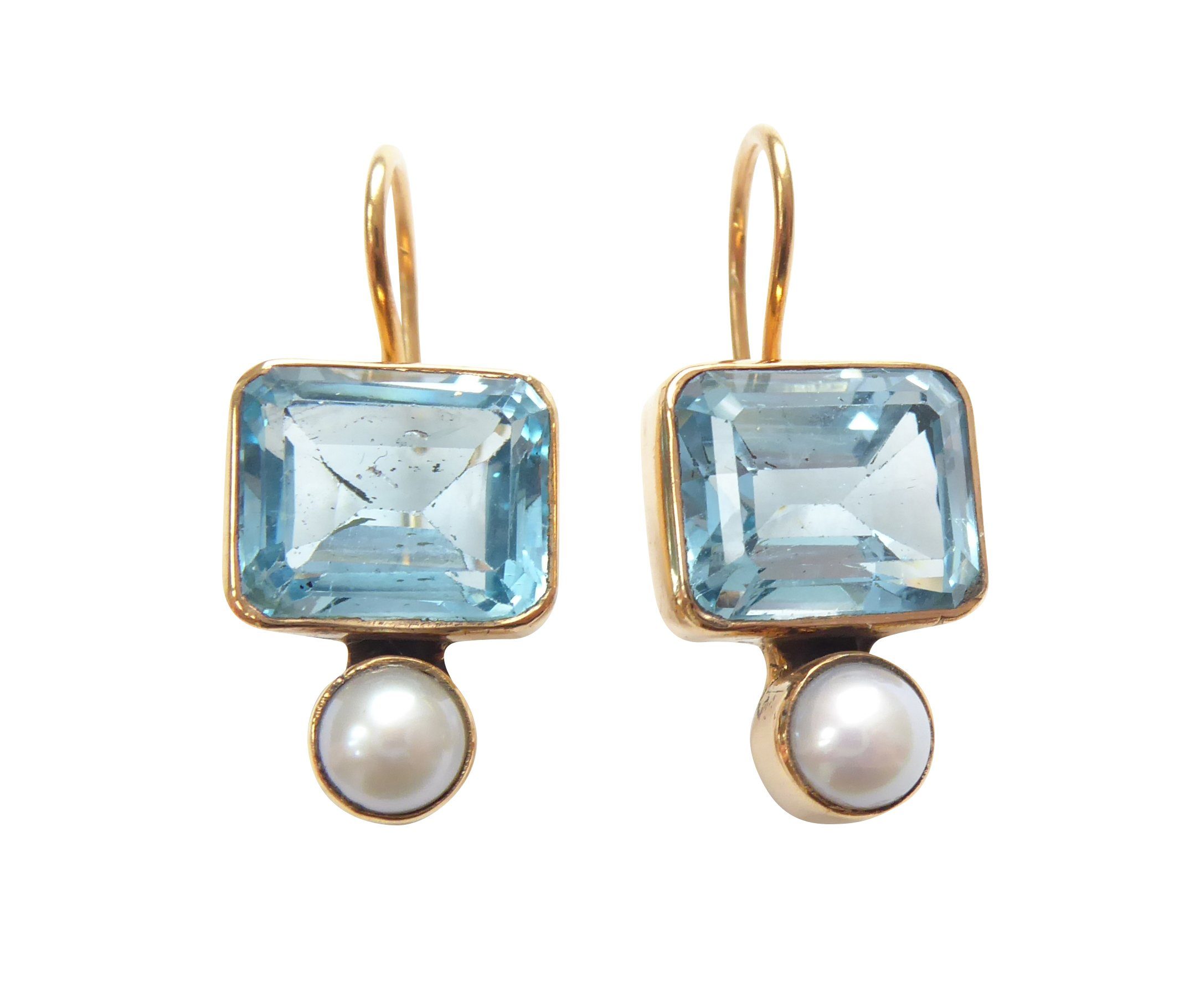 Klassische, stilvolle Ohrringe mit einem klaren, facettierten blauen Topas und einer kleinen Süßwasserperle. Das Material dieser hochwertigen Ohrringe ist Silber vergoldet und ist antiallergisch und gut verträglich. Die Topaz-Ohrringe sind hinten mit einem Haken verschließbar. Durch die strahlende Leuchtkraft des Edelsteins sind die Ohrringe ein Hingucker! Diese edlen, eleganten Vintage-Ohrringe werden in Florenz in einer kleinen Schmuck-Werkstatt in liebevoller und aufwendiger Handarbeit gefertigt, so dass jedes Schmuckstück ein einzigartiges Unikat ist. Daher sind kleine Abweichungen zu dem Bild möglich. Die Ohrringe sind inspiriert durch historischen, klassischen Schmuck von Renaissance-Gemälden aus den Uffizien. Durch ihr außergewöhnliches Design im Antik- und Retro-Look sind sie besonders geeignet als Geschenk zum Geburtstag, Weihnachten, Konfirmation oder Valentinstag für Frauen oder Mädchen. Maße der Ohrringe: Höhe (ohne Gehänge): 1,6 cm, Breite: 1,2 cm.