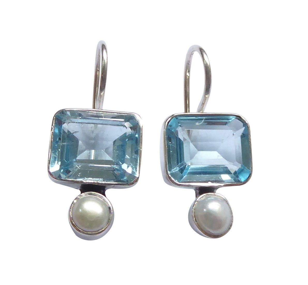 Klassische, stilvolle Ohrringe mit einem klaren, facettierten blauen Topas und einer kleinen Süßwasserperle. Das Material dieser hochwertigen Ohrringe ist Silber und ist antiallergisch und gut verträglich. Die Topaz-Ohrringe sind hinten mit einem Haken verschließbar. Durch die strahlende Leuchtkraft des Edelsteins sind die Ohrringe ein Hingucker! Diese edlen, eleganten Vintage-Ohrringe werden in Florenz in einer kleinen Schmuck-Werkstatt in liebevoller und aufwendiger Handarbeit gefertigt, so dass jedes Schmuckstück ein einzigartiges Unikat ist. Daher sind kleine Abweichungen zu dem Bild möglich. Die Ohrringe sind inspiriert durch historischen, klassischen Schmuck von Renaissance-Gemälden aus den Uffizien. Durch ihr außergewöhnliches Design im Antik- und Retro-Look sind sie besonders geeignet als Geschenk zum Geburtstag, Weihnachten, Konfirmation oder Valentinstag für Frauen oder Mädchen. Maße der Ohrringe: Höhe (ohne Gehänge): 1,6 cm, Breite: 1,2 cm.