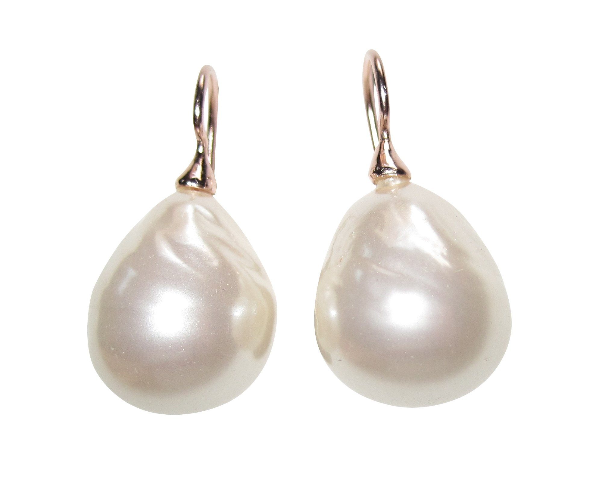 Schlichte Eleganz: Edle Ohrringe mit einer relativ großen, weiß schimmernden Barockglasperle. Die Fassung der Ohrringe besteht aus Sterlingsilber mit einer 18-karätigen Goldplattierung. Wunderbar mit ihrem Lieblingsoutfit zu kombinieren! Dieser wertvolle Modeschmuck wird in liebevoller Handarbeit in kleinen italienischen Ateliers gefertigt. Dabei werden hochwertige Barockglasperlen sowie antiallergische Edelmetalle verwendet. Barockglasperlen sind künstlich hergestellte Perlen, bei denen ein Glaskern von Perlmutt umgeben ist. Daher sind sie optisch den echten Barockperlen ähnlich. Maße der Ohrringe (ohne Bügel): Höhe: 1,7 cm, Breite: 1,4 cm.