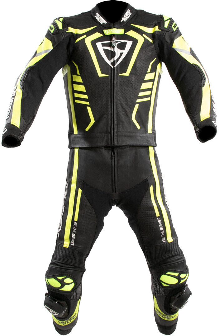 Dieser Anzug besteht aus 1,2-1,3 mm starkem, hochwertigem und sehr strapazierfähigem Rindsleder, das auf der Vorder- und Rückseite perforiert ist und eine hervorragende Belüftung bietet. Durch die gummierten Einsätze passt sich der Anzug perfekt an den Körper des Besitzers an. Der Anzug ist außerdem mit den modernsten TPU-Außenprotektoren ausgestattet. Für einen besseren Komfort ist der Halsbereich aus Neoprenmaterial gefertigt. Diese Lederkombi ist sowohl für den Einsatz auf der Straße als auch auf der Rennstrecke geeignet.