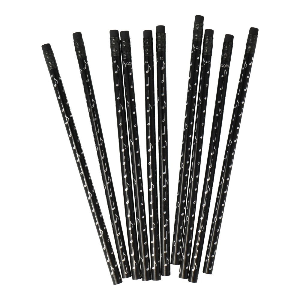 Die edlen schwarzen Bleistifte sind rundherum mit glänzenden Noten bedruckt und haben am oberen Ende einen schwarzen Radiergummi. Jeder Musiker wird sich über das tolle, angesagte Schmuckstück im Federmäppchen freuen. Da geht kein Bleistift mehr verloren, denn auf so ein besonderes Stück, passt man auch besonders gut auf.
