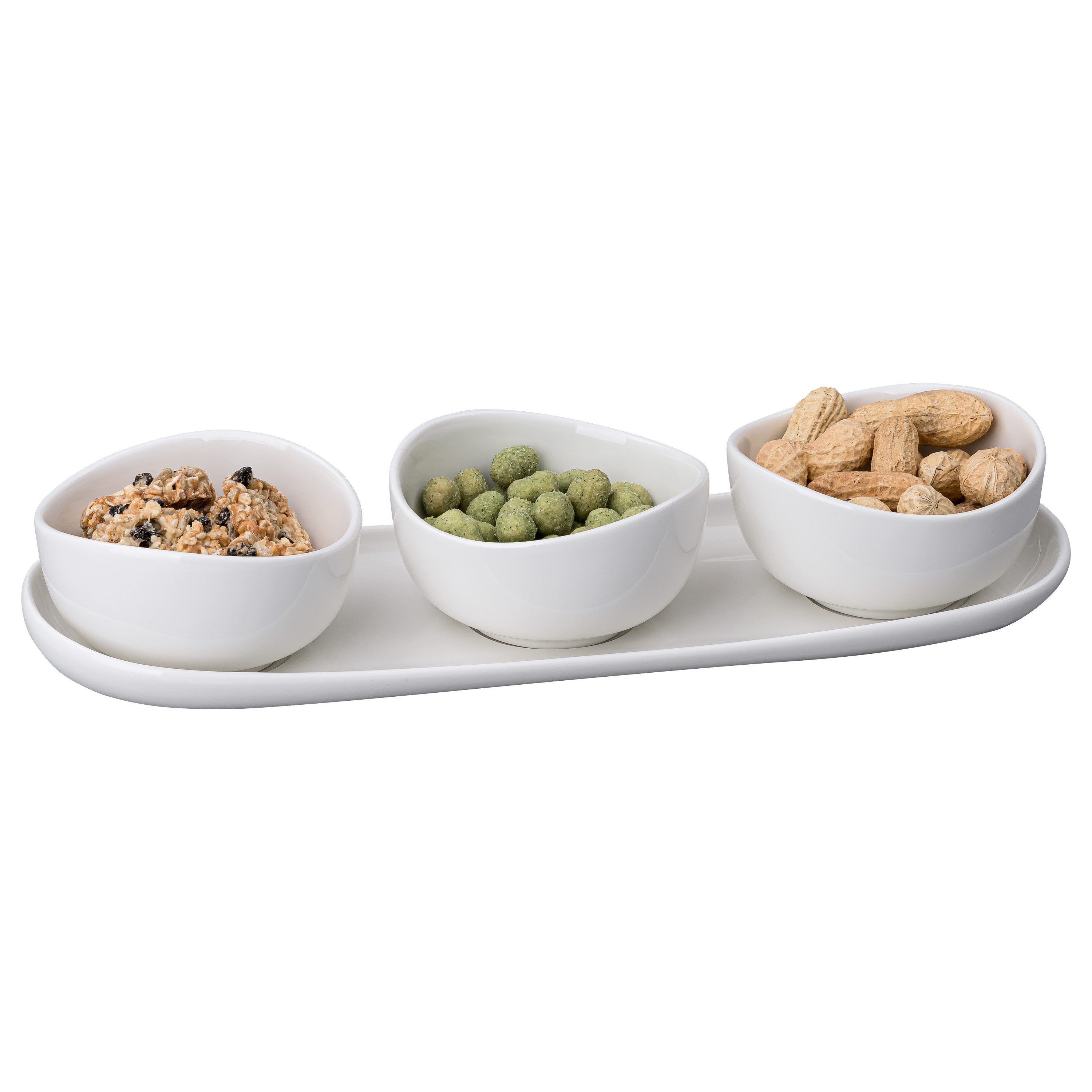 1 x Servierplatte 3 x Dip- und Snackschälchen