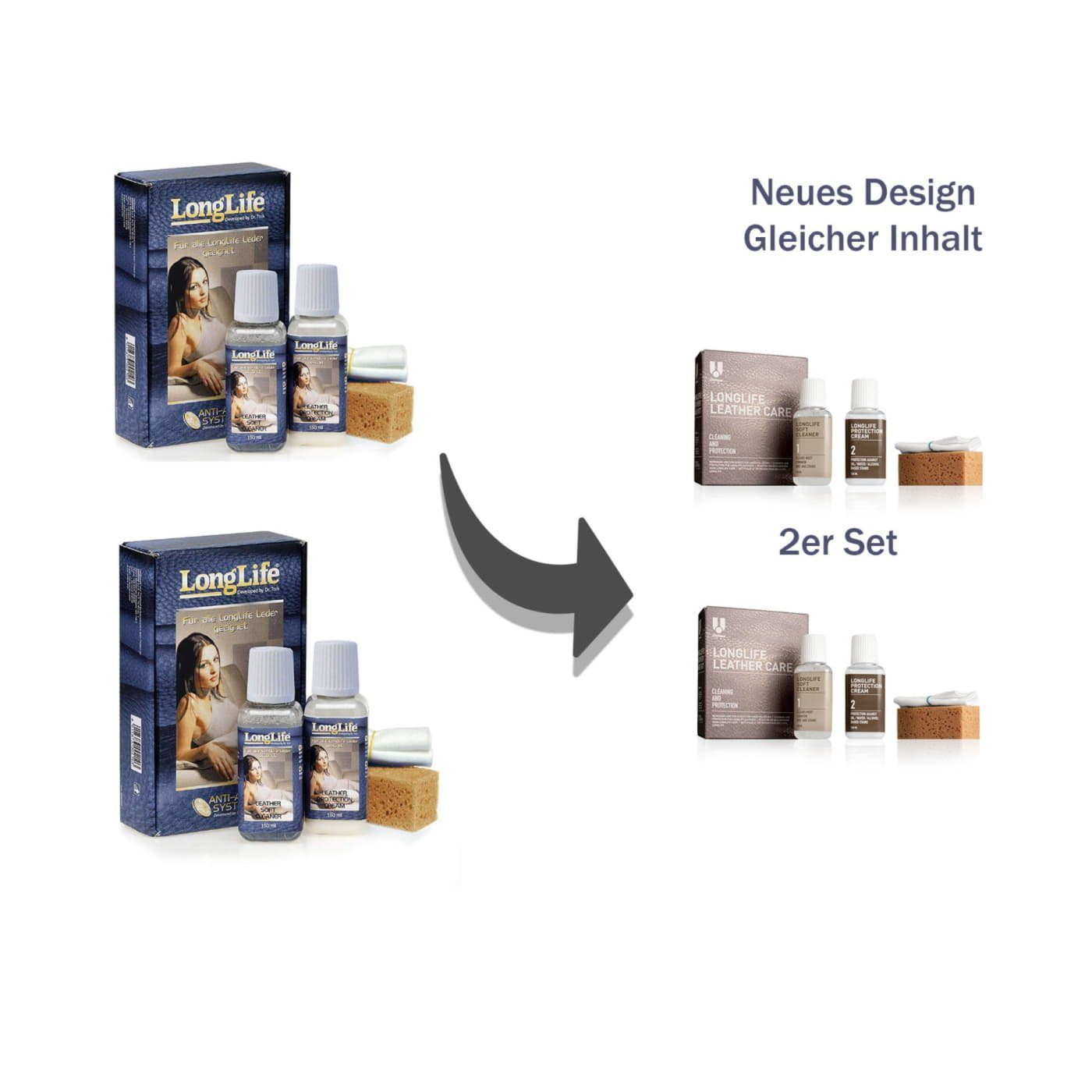 Long Life Midi-Kit. Dieses Set besteht aus folgenden Einzelteilen: 2 x LongLife Protection Cream 150 ml 2 x LongLife Soft Cleaner 150 ml 2 x Weiches Tuch 2 x Schwamm Anleitung : LongLife Soft Cleaner ein Reinigungsmittel auf Wasserbasis kann auf allen Glattlederarten angewendet werden; mildes Reinigungsmittel reinigt die meisten Verschmutzungen und Flecken auf Wasserbasis. Leather Soft Cleaner enthält kein Lösungsmittel. LongLife Protection Cream mit Anti-Aging(R)-System developed Dr. Tork auf Wasserbasis; kann auf allen Glattlederarten angewendet werden enthält das alterungs-hemmende Anti-Aging(R) System. Diese Schutzcreme bildet eine schützende Barriere gegen Öl, Wasser und alkoholische Getränke ohne die Atmungsfähigkeit des Leders zu beeinträchtigen Longlife Lederpflege Set besteht aus: Protection Cream, Soft Cleane, Pflegetuch und Schwamm Beachten Sie bitte die Описание товара (мы ещё работаем над переводом, извините за неудобство) auf der Flasche, sowie die nachfolgend aufgeführten Hinweise.