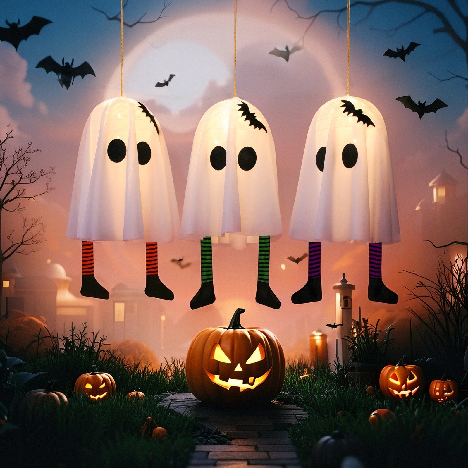 Es ist eine tolle Idee, sie im Garten, auf der Terrasse, an Dachvorsprüngen und Bäumen aufzuhängen. Die hängenden Geisterlichter werden vom Wind bewegt und schaffen bei Einbruch der Dunkelheit eine geheimnisvolle Atmosphäre. Die ideale Halloween-Dekoration!