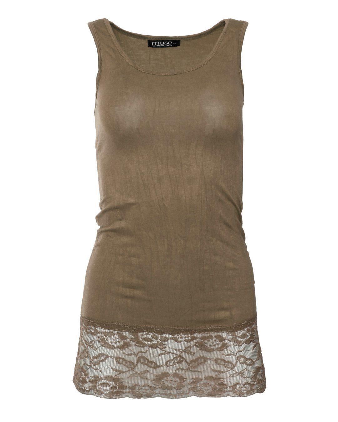 Schon lange ein Klassiker unter den Basic Tops. Das lange Trägertop ist ein perfektes Unterdrunter für weite Shirts, Blusen oder Pullis. Es liegt wunderbar angenehm weich auf der Haut, trägt nicht auf und lässt sich einfach super im Lagen-Look kombinieren, indem Sie die Spitze unterm Oberteil rausspitzeln lassen. Ob Ton-in-Ton oder auch kontrastierend gestylt ist der breite Spitzensaum ein hübscher Hingucker und damit einfach ein bisschen mehr als "nur" ein Unterhemd.