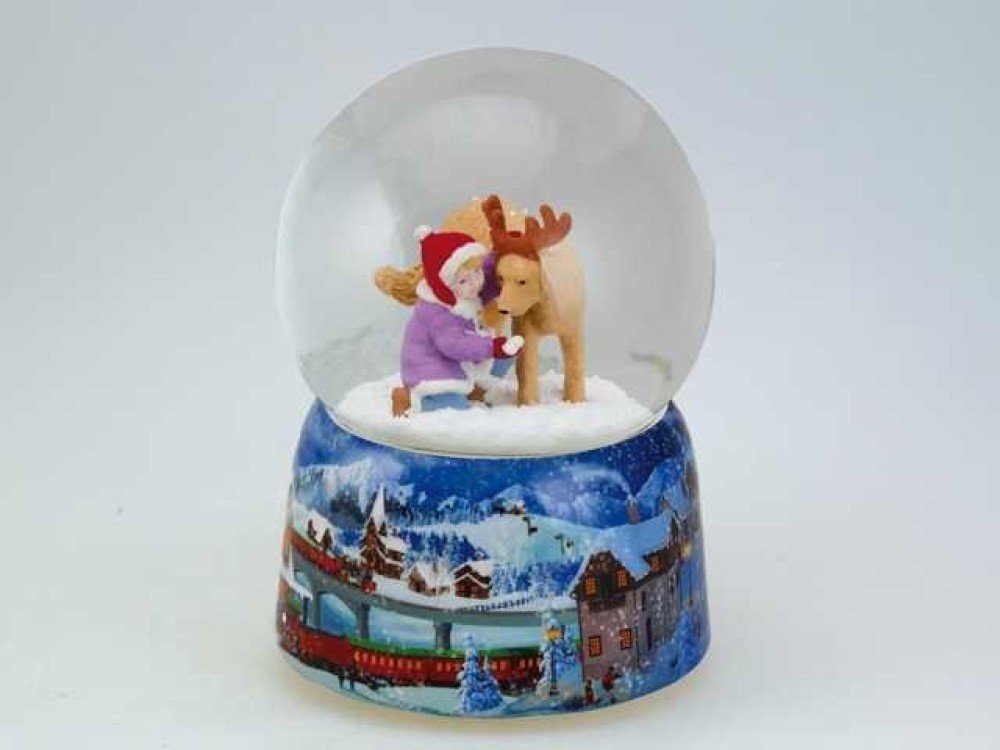 Spieluhr Spieluhr - Schneekugel Kind mit einem Golden Retriever als Rentier