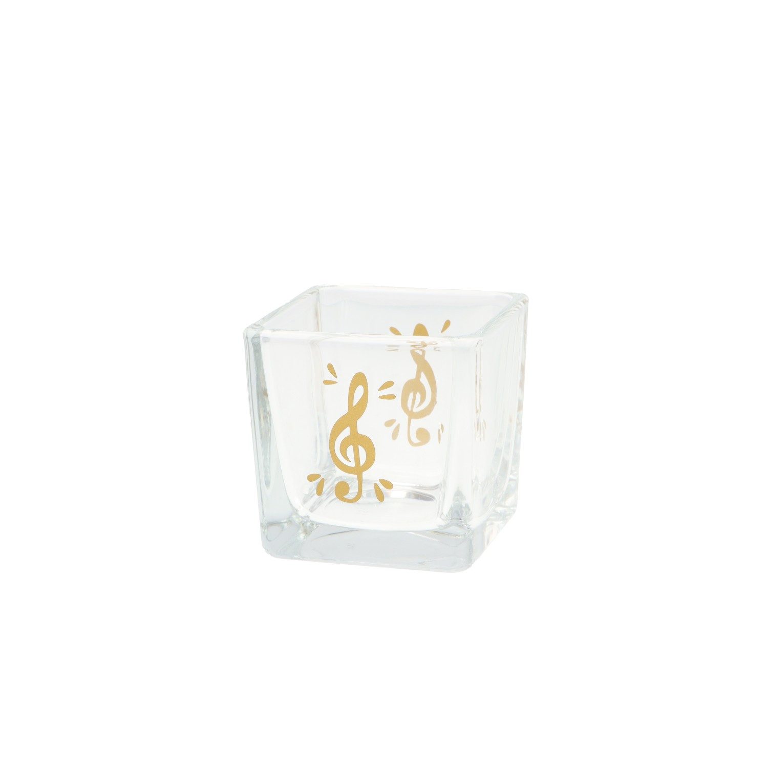 quadratisches Teelichtglas mit Violinschlüssel, Windlicht (beidseitig)