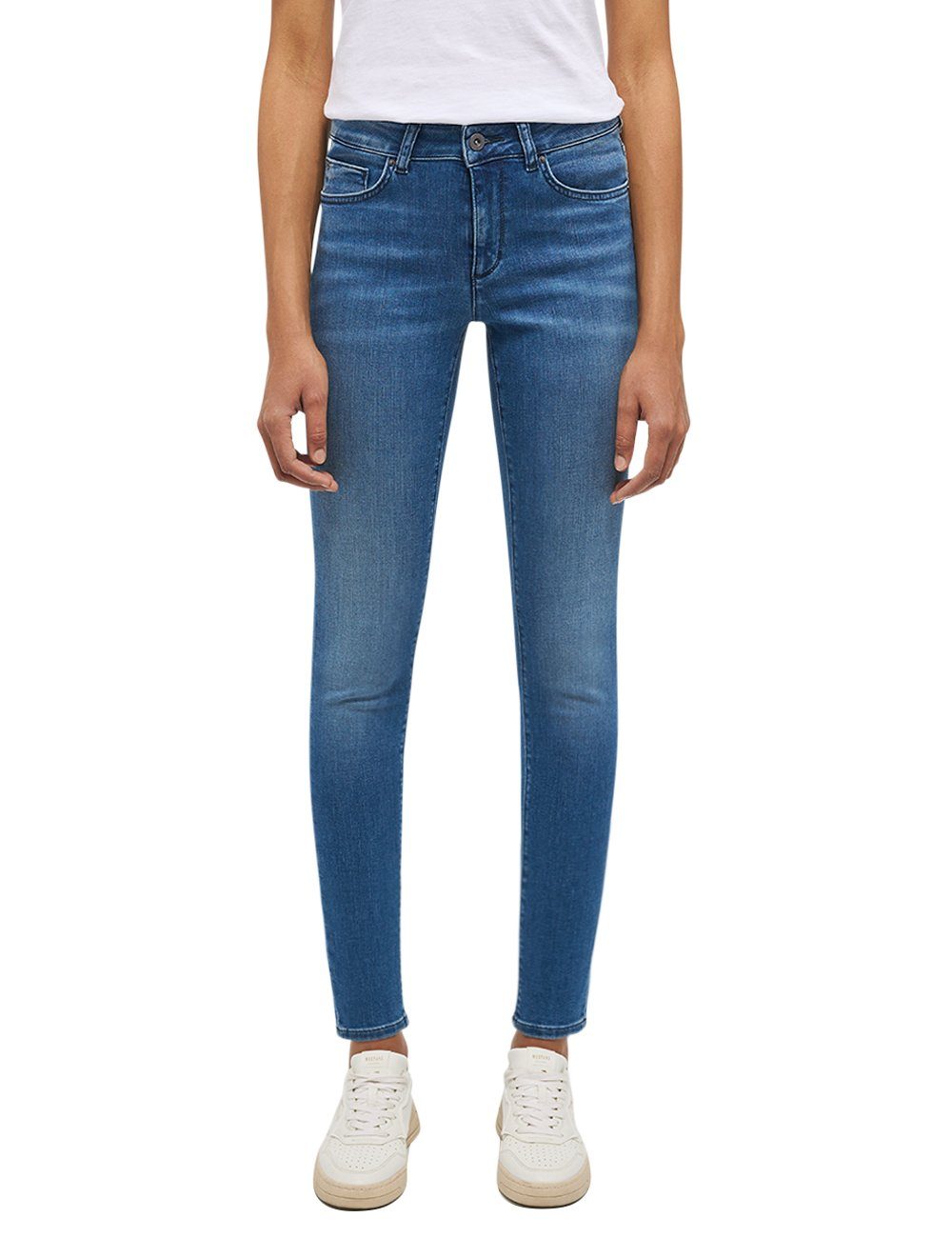 Die Skinny-Jeans Mustang "SHELBY" mit Reißverschluss passt zum sportlichen Treter ebenso wie zum Lederschuh. Frauen möchten vor allem eines: immer gut aussehen und gleichzeitig frei sein. Die Kleidung sollte daher bequem sein und parallel die natürliche Wirkung einer Frau unterstützen. Die mittlere Leibhöhe sorgt für einen festen Sitz der Hose etwas unterhalb des Bauchnabels. Sie ist für alle Körperformen geeignet.