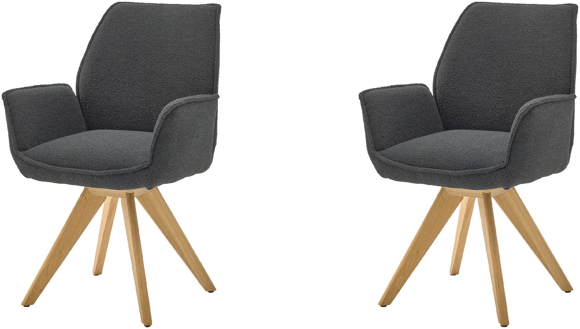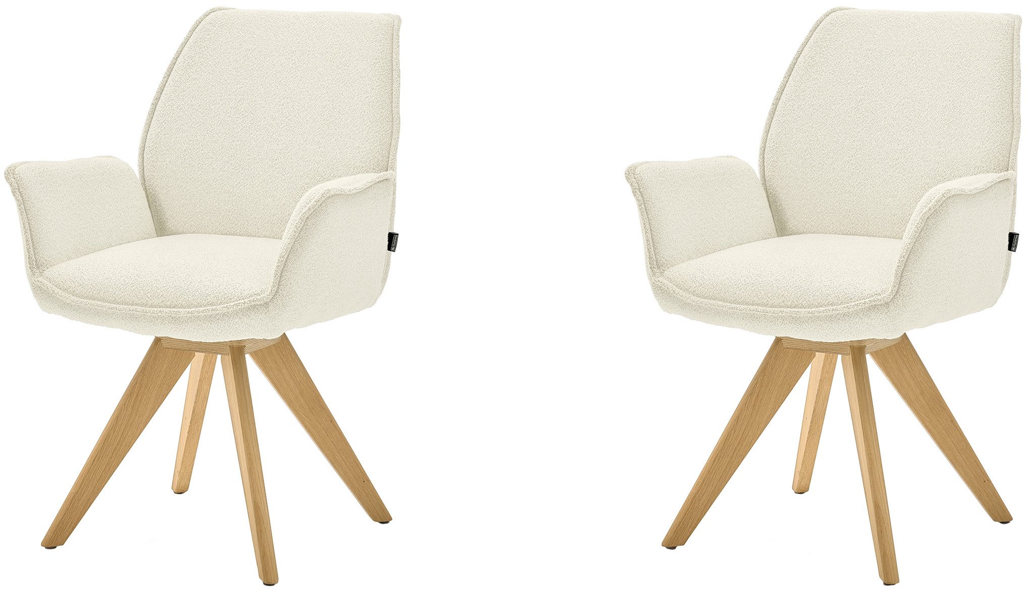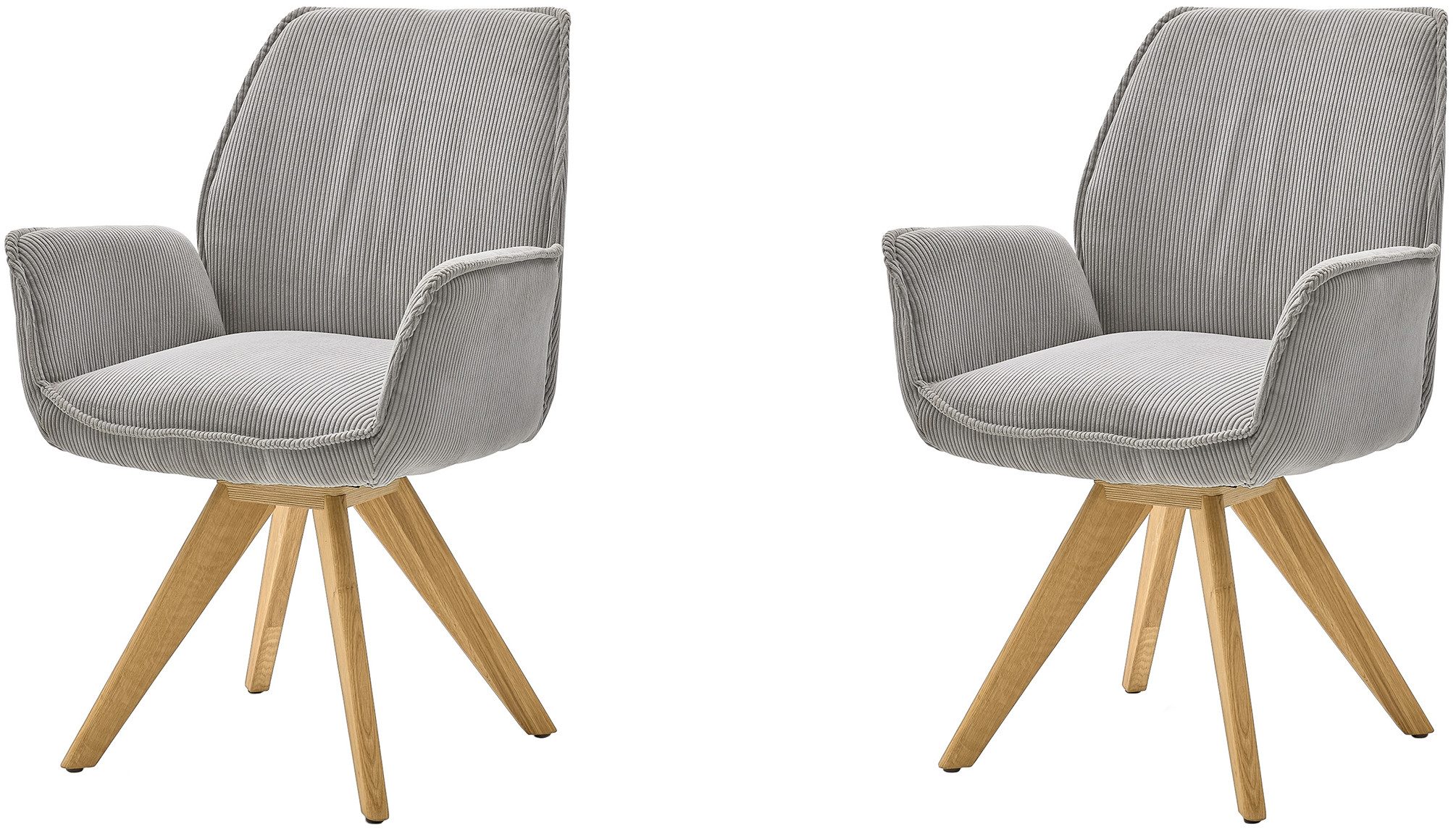 Diese Esszimmerstühle »Tiama« von Musterring macht nicht nur optisch einiges her, sondern punktet auch mit seiner Langlebigkeit. Wenn der Stuhl nebenan oder die Tischbeine im Weg sind, ist es gar nicht so einfach Platz zu nehmen. Die Lösung hierzu ist die Drehfunktion, mit der man sich setzen und aufstehen kann, ohne den Stuhl vorher verrücken zu müssen. Auch wenn du länger sitzen bleibst, ist er komfortabel, denn sowohl die Arm- und Rückenlehne als auch die Sitzfläche sind angenehm gepolstert. Bei etwa 142 Kilogramm liegt die maximale Belastbarkeit. Zwei bis drei Mal jährlich empfiehlt sich zur Pflege des Holzes das Auftragen eines Oberflächenschutzes. Hier kannst du zwischen Öl und Wachs wählen. Das Holzöl bringt die Holzmaserung wieder besonders intensiv zur Geltung, während ein Wachs zusätzlich für einen wasserabweisenden Effekt sorgt. Die Pflege lässt sich mit einem Pinsel oder einem Tuch auftragen.