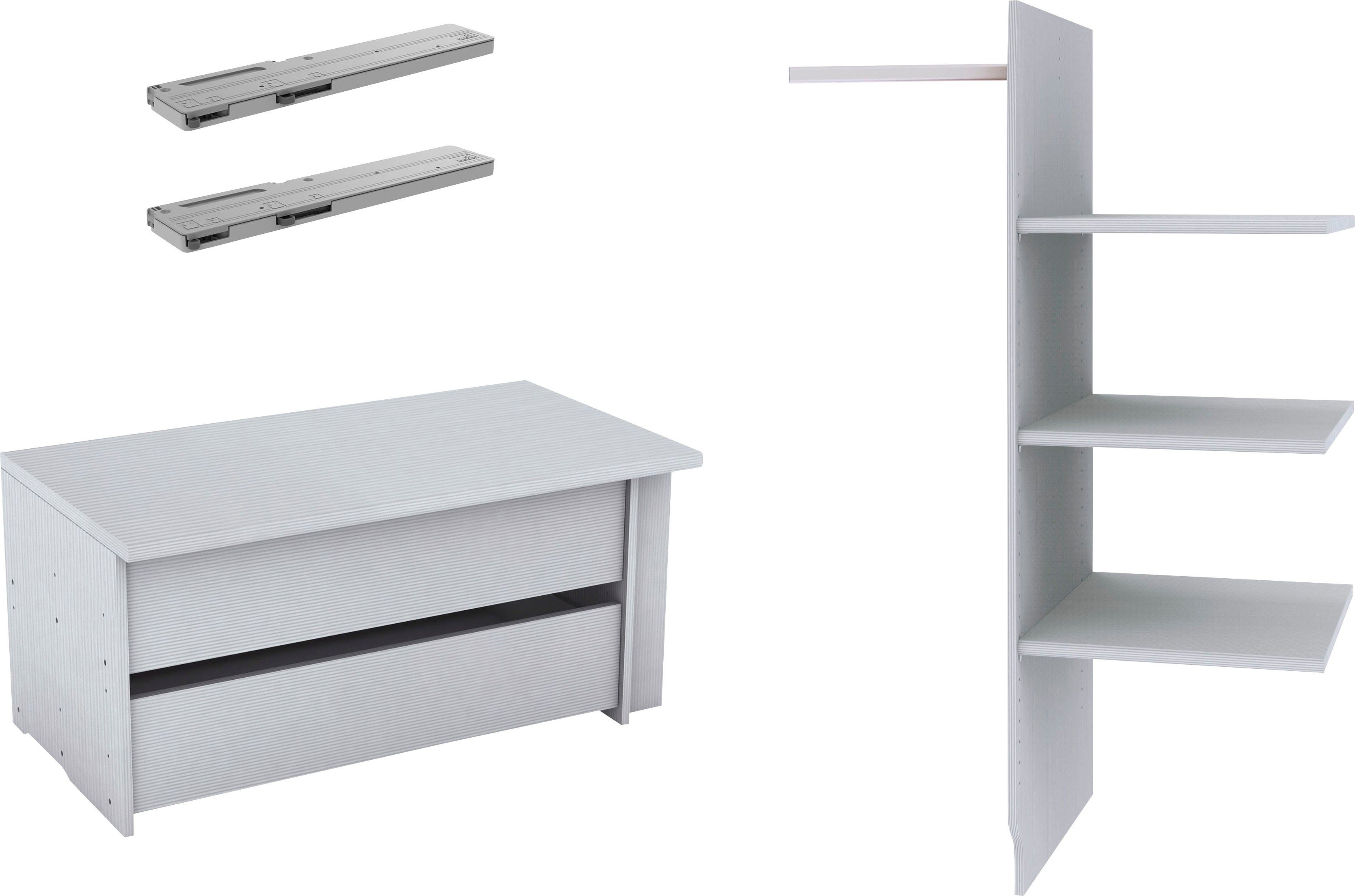 Lieferumfang | 1x Set Außentürendämpfung, 1x Schubkasteneinsatz und 1x Wäschebodeneinsatz |