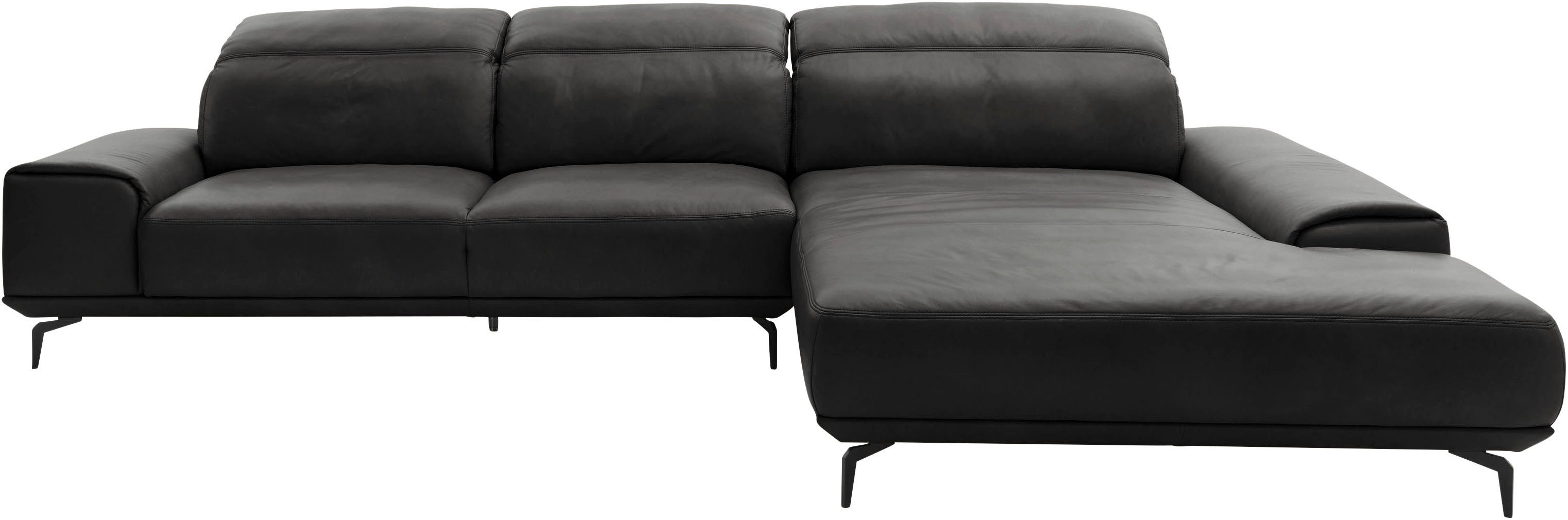 Eine elastische und formbeständige Sitzoberfläche bekommst du mit dieser Wohnlandschaft »MR 2490« von Musterring, die mit langlebiger Federkern-Polsterung ausgestattet ist. Bei der Wohnlandschaft befindet sich der lange Schenkel, von vorne betrachtet, links. Bei etwa 240 Kilogramm liegt die maximale Belastbarkeit. Die schwarzen Füße aus Metall benötigen nahezu keine Pflege, denn Rückstände, Schmutz oder Staub lassen sich ohne großen Aufwand mit einem feuchten Tuch abwischen. Der Hersteller gewährt dir eine Garantie von 5 Jahren.