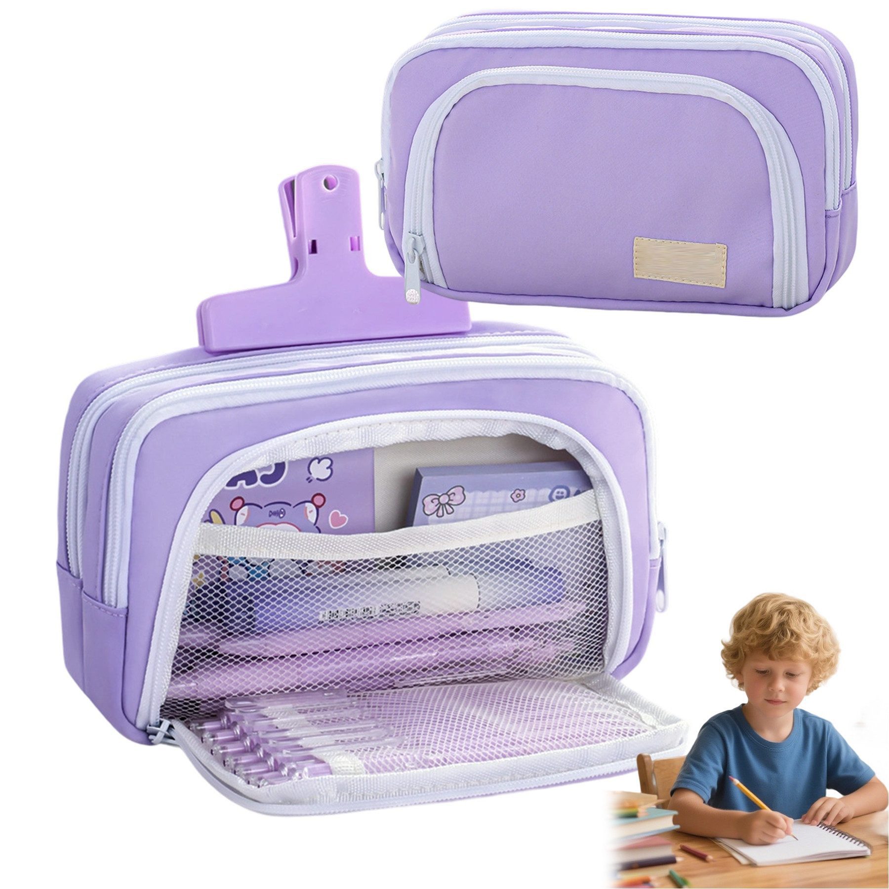 Das ästhetische Mäppchen-Design verfügt über 3 Fächer. Sie können Gegenstände nach ihren unterschiedlichen Funktionen klassifizieren und aufbewahren, zum Zusammenstellen von Stiften, verschiedenen Markern usw. und kleinen Werkzeugen wie Radiergummis, Linealen, Clips und Haftnotizen.