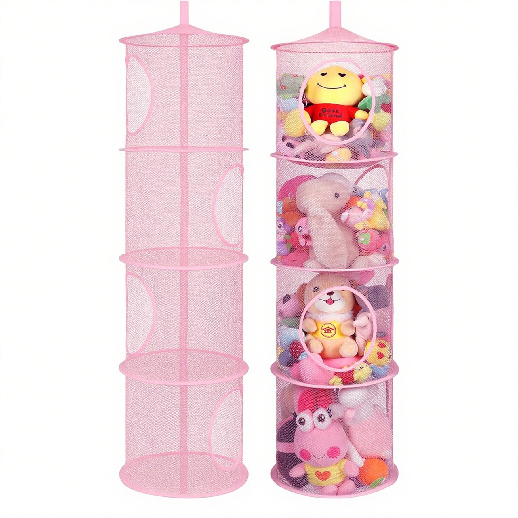 Dieses Netz eignet sich zur Aufbewahrung von Kuscheltieren, Kleidung, Snacks und kleinen Accessoires. Es kann vielseitig im Kinderzimmer, Badezimmer, Schlafzimmer oder Waschräumen genutzt werden. Vier Etagen ermöglichen eine ordentliche Organisation verschiedener Gegenstände.
