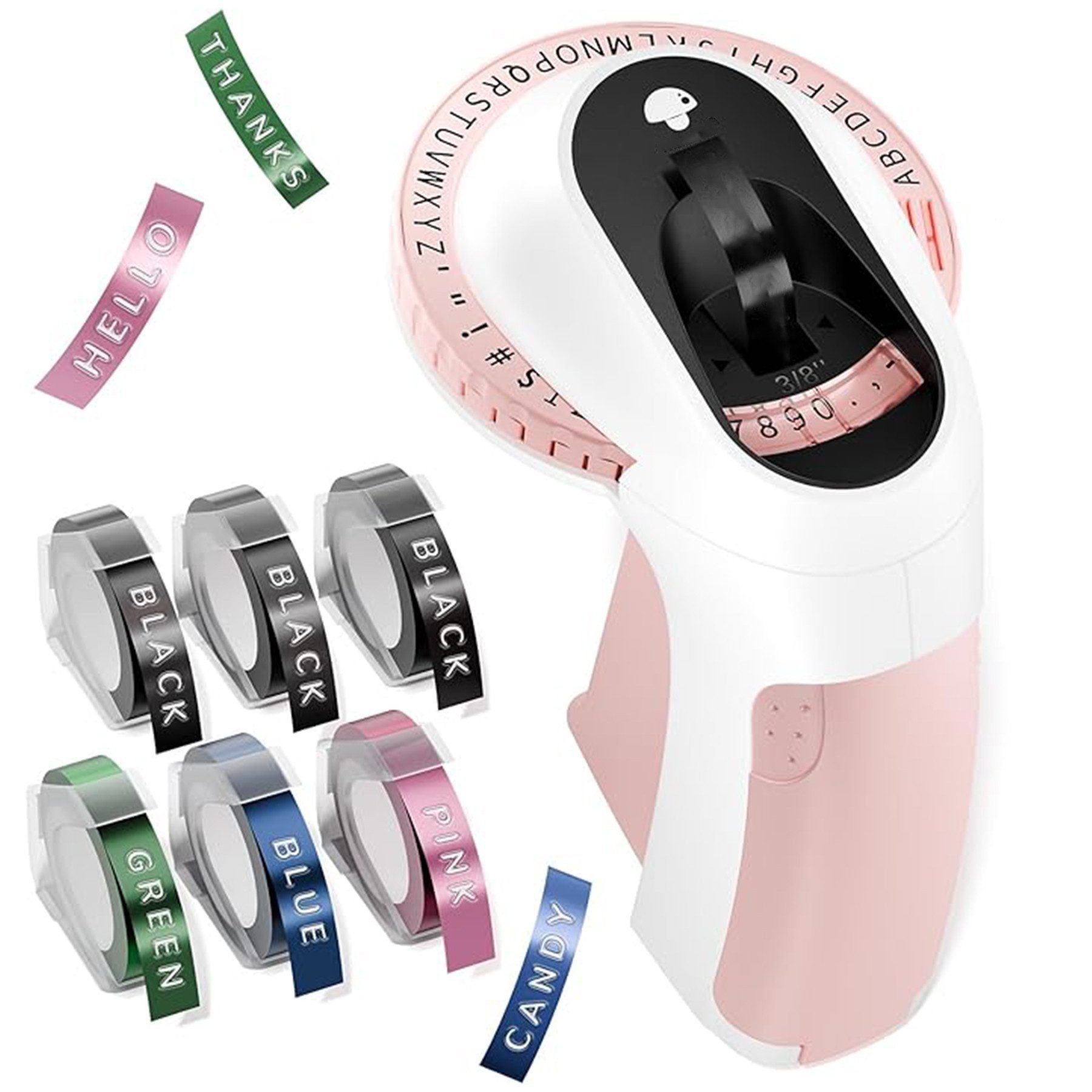 Lieferumfang | Sie erhalten ein 3D-Portables Prägeetikettiergerät und 6 Prägeetikettenbänder |