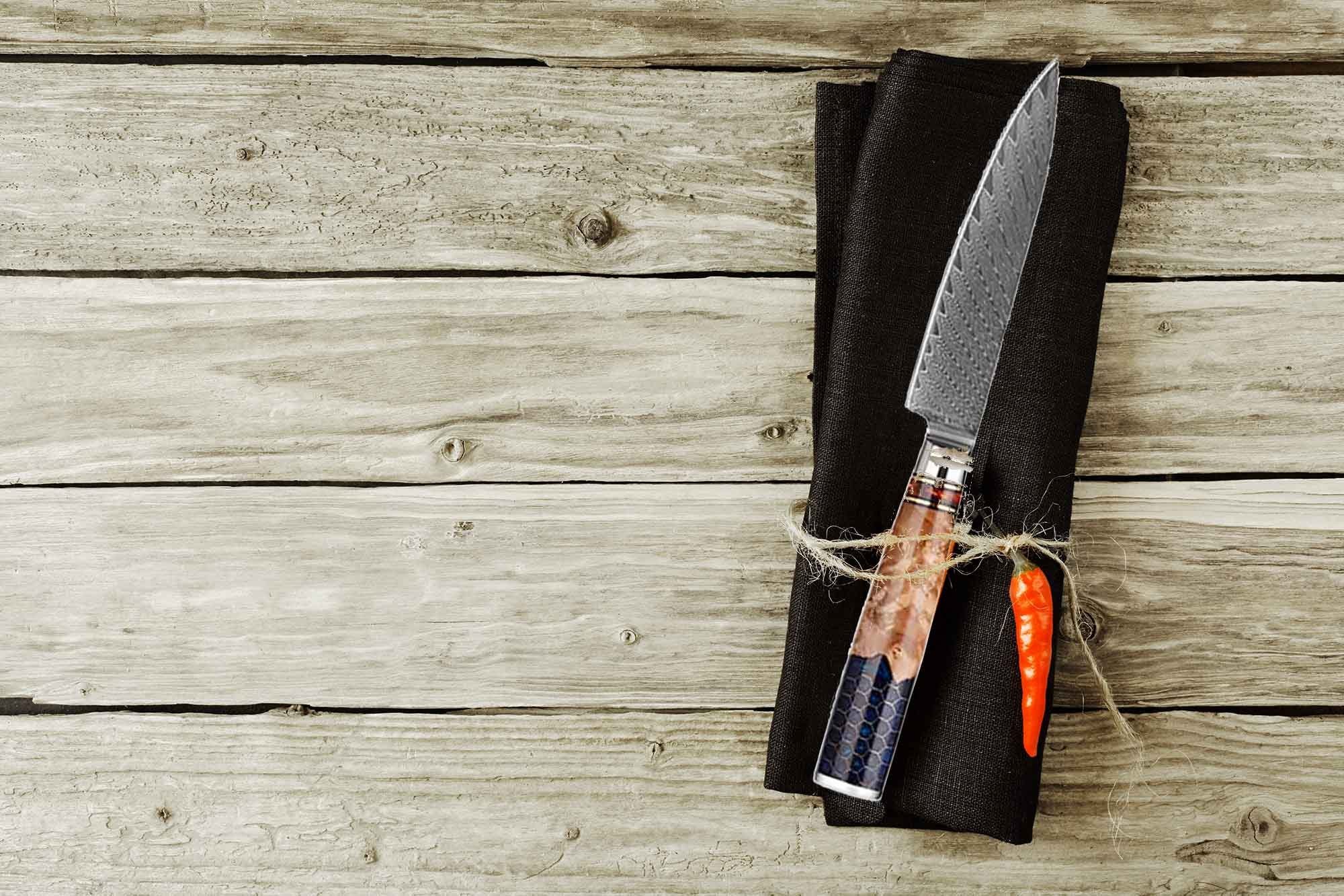 Entdecken Sie das unverzichtbare Gemüsemesser und Universalmesser – ein Damastmesser, das nicht nur extra scharf ist, sondern auch einen Blickfang in Ihrer Küche darstellt.