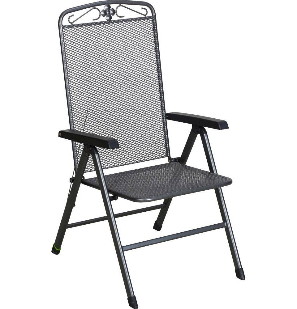 Produktdetails: Maße: 110 x 70 x 58 cm (H x L x B) | Farbe: eisengrau | Material: pulverbeschichtetes Stahlgestell | Klappstuhl | witterungsbeständig |