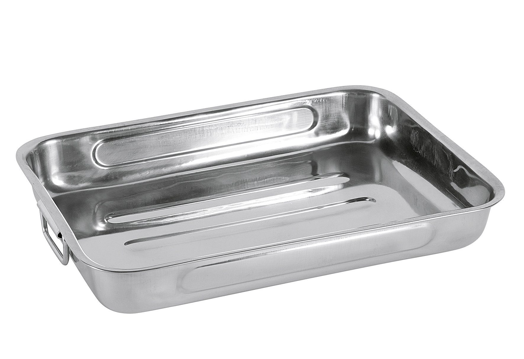 Material: Edelstahl. Größe: 40 x 30 x 6 cm. Die Vierkantpfanne von KRÜGER ist vielseitig einsetzbar zum Braten, Backen und Grillen. Sie ist spülmaschinenfest und durch die Edelstahlverarbeitung rostfrei sowie leicht zu reinigen. Ausgestattet mit platzsparenden Fallgriffen.