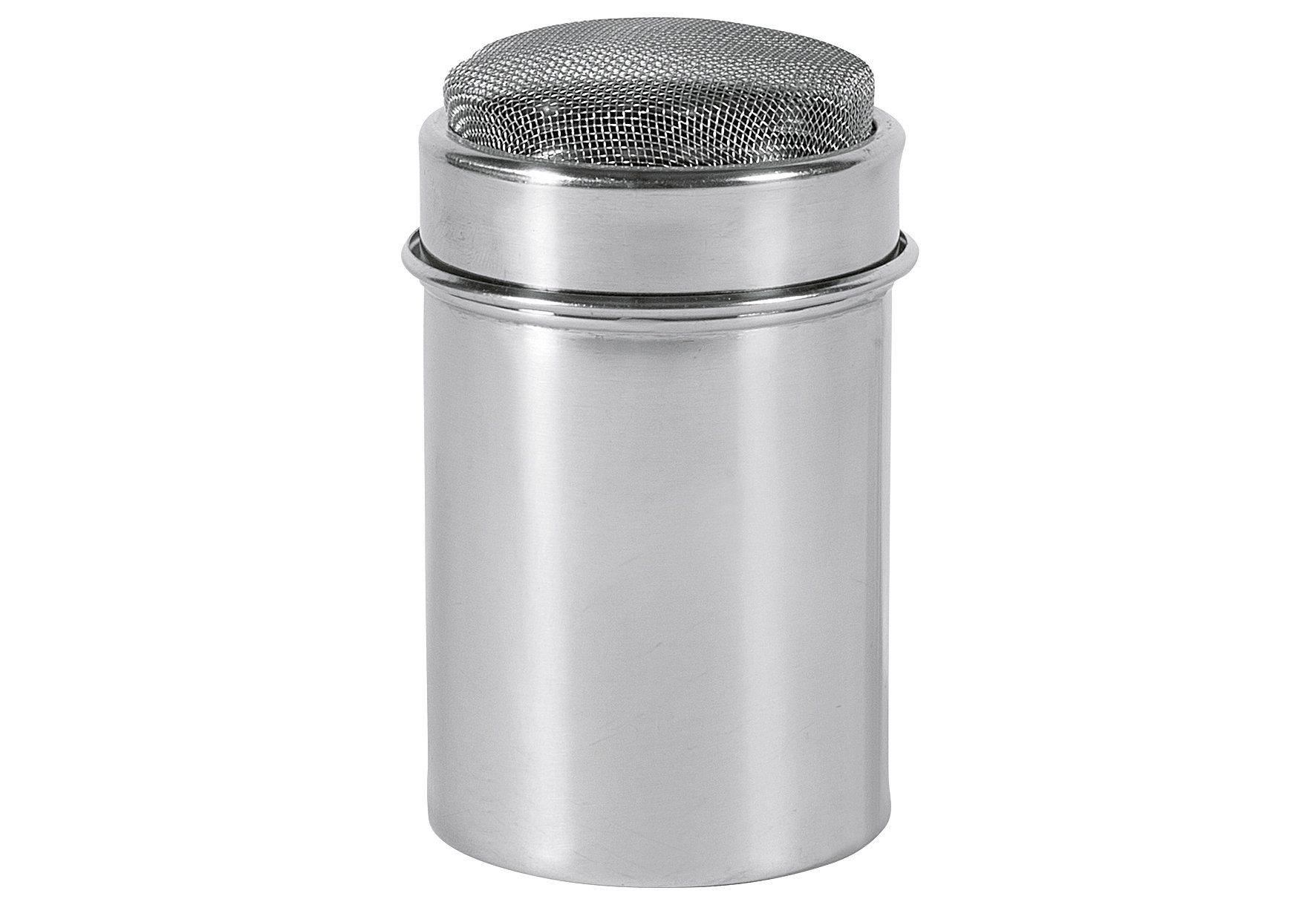 Rostfreier Puderzuckerstreuer mit Gummidichtring für eine saubere Nutzung.