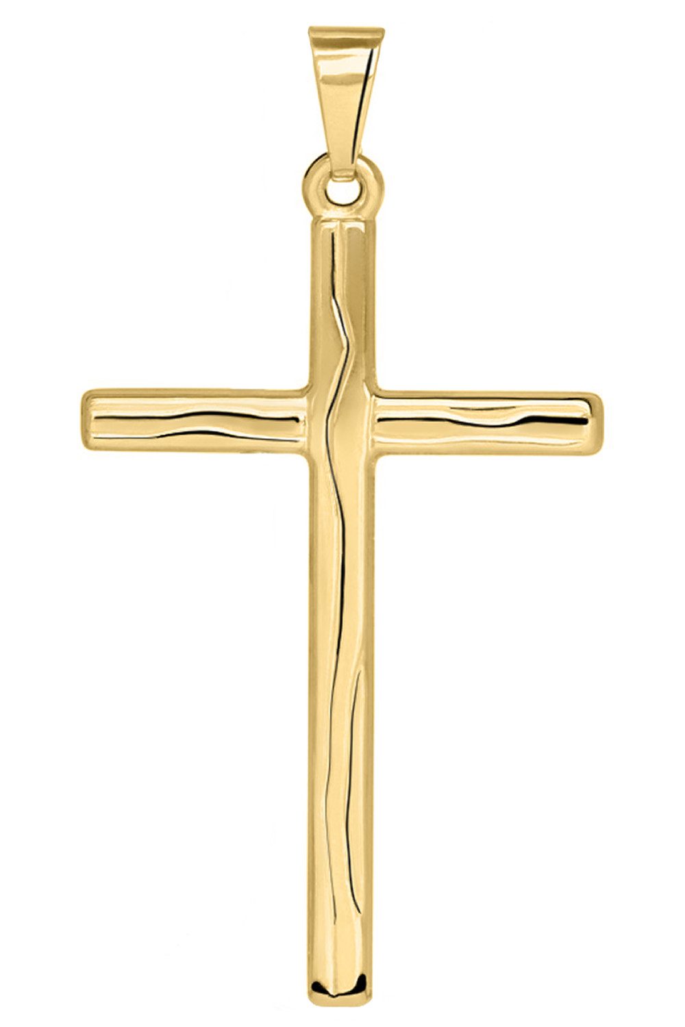 Auf der Such nach besonderem Herrenschmuck in echtem Gold? Wir möchten dir dieses schöne Goldkreuz präsentieren. Es ist schlank im Design gestaltet und hat eine ausgefallene Oberfläche, die einer Baumrinde nachempfunden wurde. Ideal zum Kombinieren mit einer Halskette in Gold.