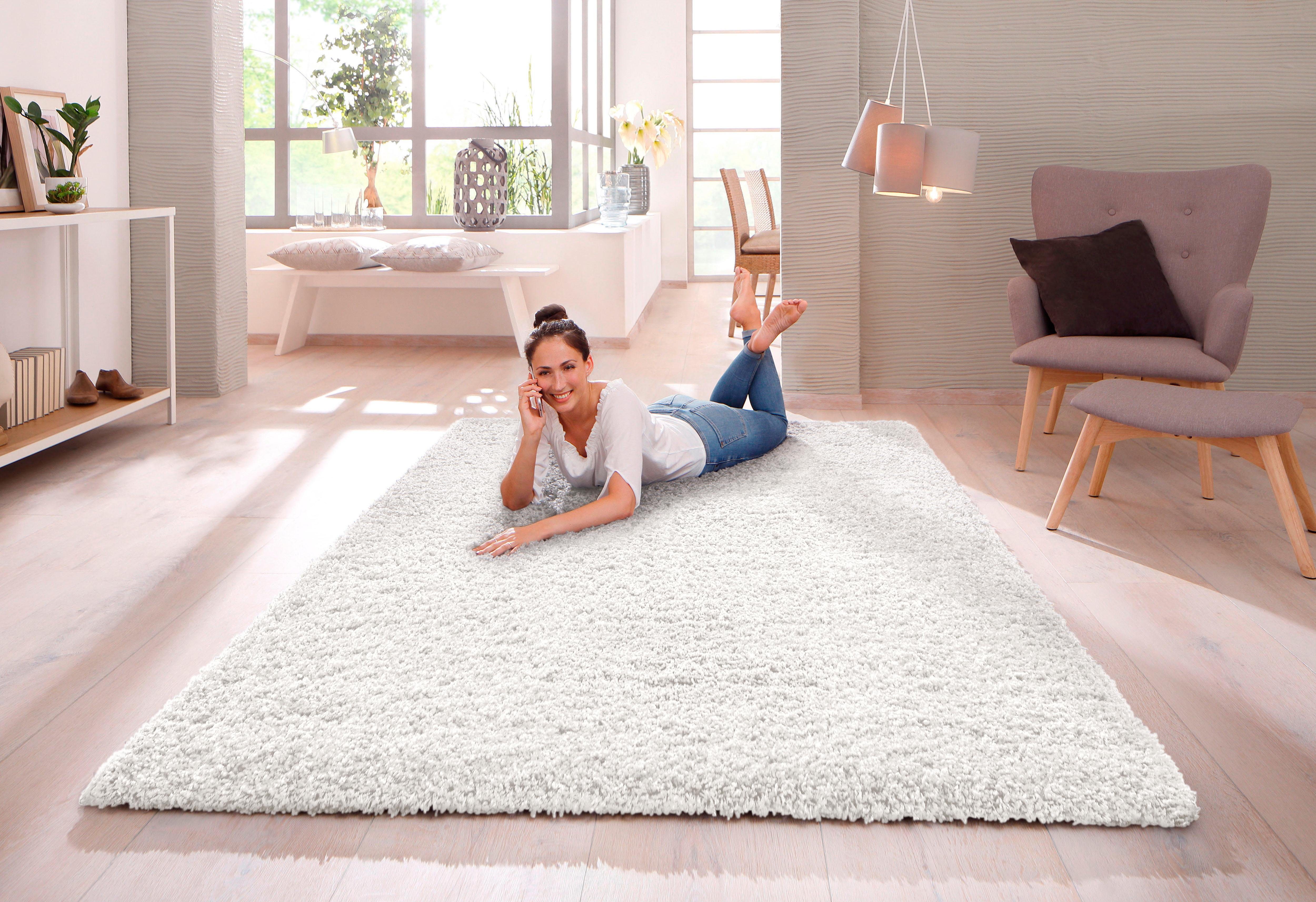 Er hat eine robuste Struktur dank der strapazierfähigen Kunstfaser. Das macht ihn zu einem nützlichen Allrounder. Gut zu wissen: Darüber hinaus ist das Material unempfindlich. Selbst als Hochflor-Style verfügt der Wohnartikel über robuste und schmutzresistente Eigenschaften. So wird in diesem Fall die Reinigung erleichtert: Denn einfaches Absaugen ist im Normalfall ausreichend. Um den Flor wieder flauschig aufzurichten, kannst du ihn zudem kräftig ausschütteln. Dank einer Höhe von 45 mm ist die Auslegeware ein flauschiges Modell, in das passionierte Barfußläufer gerne ihre Zehen vergraben. Zudem bringt der Hochflor-Teppich bei Laminat oder Fliesenboden an den richtigen Stellen eine wärmende Basis in deinen Raum. Denn er ist für Böden mit Fußbodenheizungen geeignet. Er verringert den Trittschall, was auf vielen Böden einen hörbaren Unterschied macht.