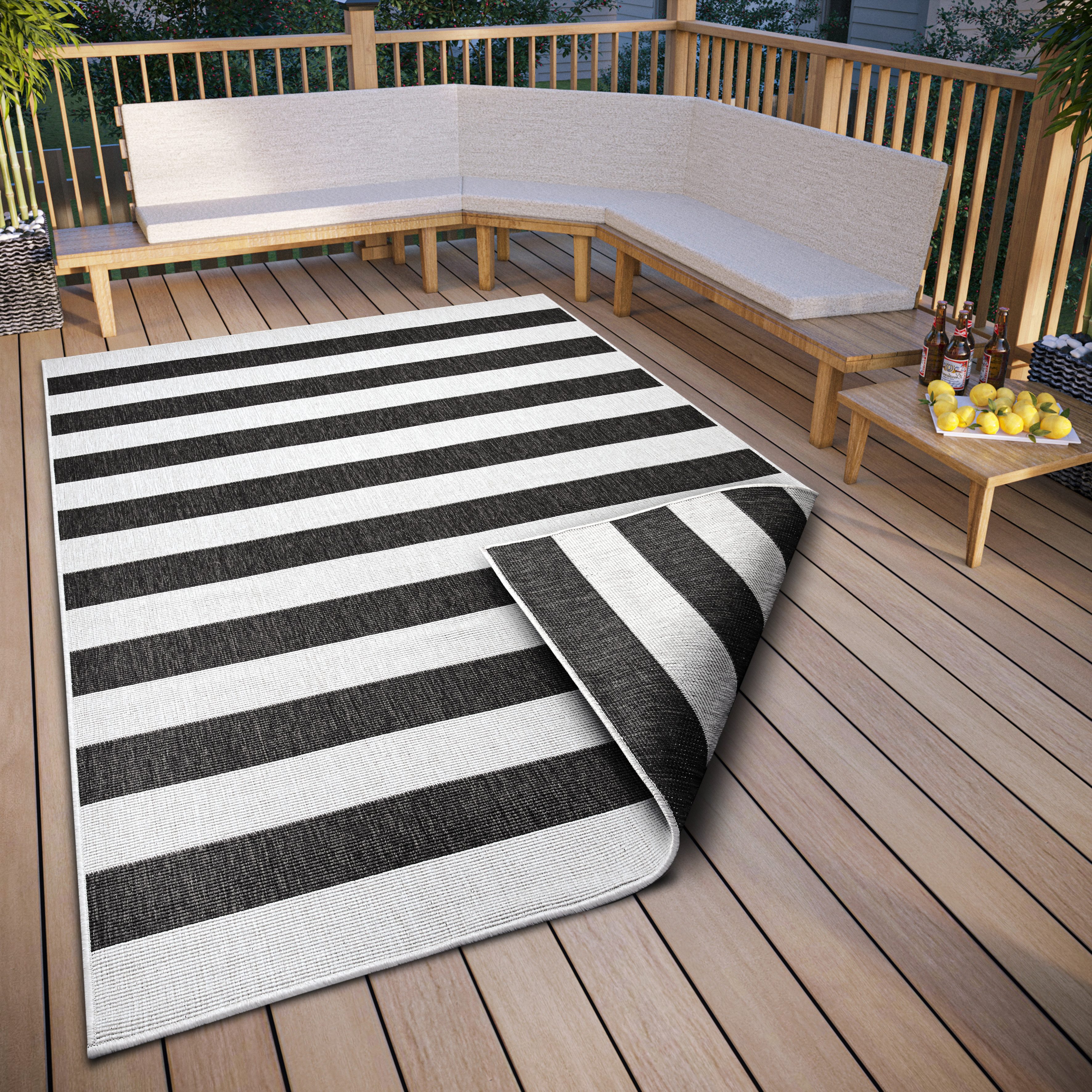Er hat dank der Kunstfaser eine geringe Schmutzhaftung. Dadurch kannst du ihn als ein praktisches Multi-Talent nutzen. Das Material ist zudem unempfindlich. Outdoor-Stücke kannst du für den Balkon und in geschützten Bereichen des Gartens nutzen – sie sind wasserbeständig und ziemlich wetterfest. Die Bodendeko ist nämlich dank ihrem Flor von 5 mm wenig anfällig für Schmutz oder Staub, was sie zu einem leicht händelbaren Wohnaccessoire macht. Auch bringt der gewebte Wendeteppich bei Laminat oder Fliesenboden an den richtigen Stellen eine wärmende Unterlage in deinen Raum. Denn er ist für Böden mit Fußbodenheizungen geeignet.