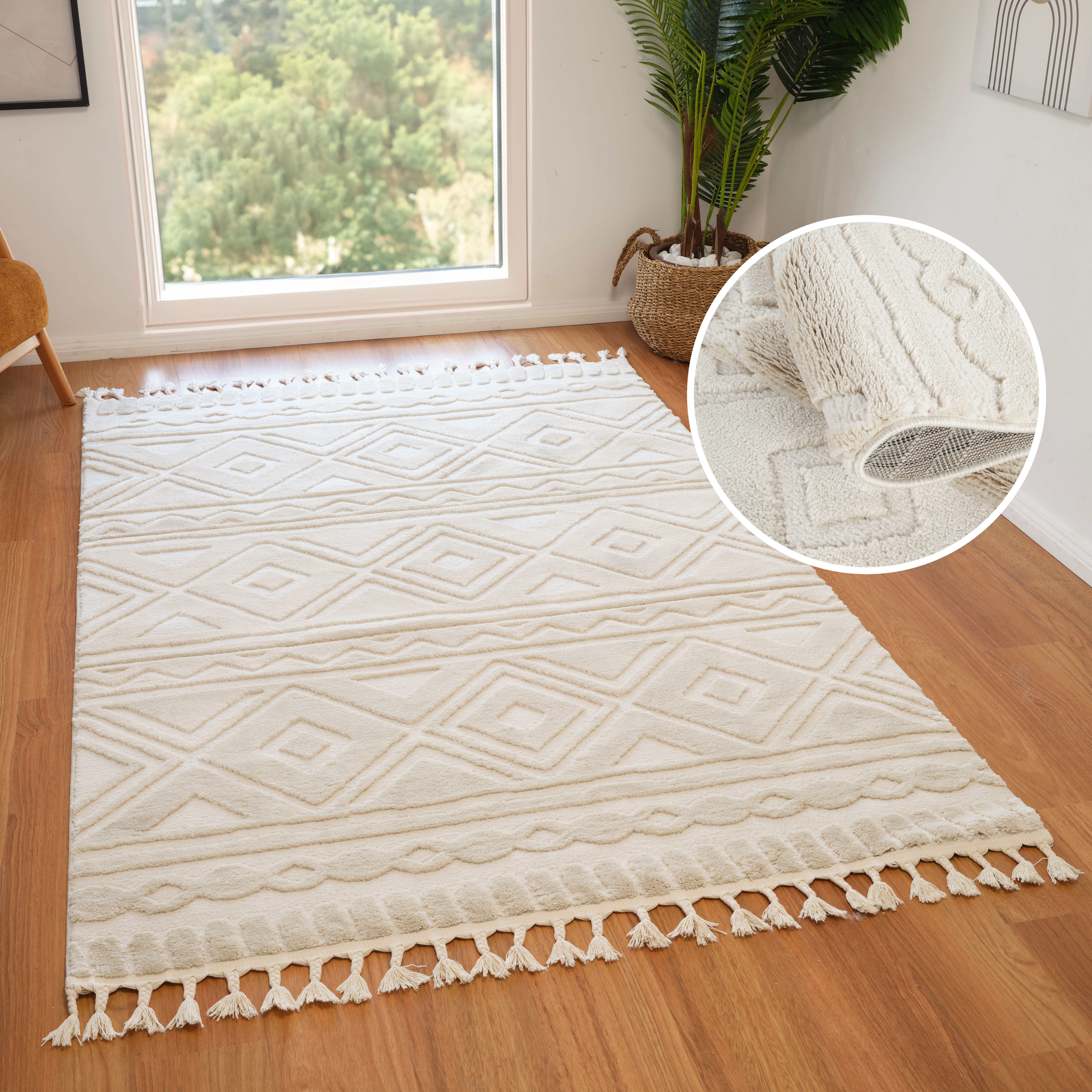 Dank der strapazierfähigen Kunstfaser verfügt er über eine geringe Schmutzhaftung. Dadurch kannst du ihn als ein praktisches Multi-Talent nutzen. Das Material ist schön unempfindlich. Wenn es dir darum geht, deine Räume wohnlich zu gestalten, aber gleichzeitig einen einfach zu handhabenden Bodenbelag zu wählen, ist dieser Style mit 19 mm Flor eine gute Wahl. Wärme an den Füßen bringt der gewebte Teppich auch in Zimmer mit Laminat oder Fliesenböden. Er verringert den Trittschall, was auf vielen Böden einen deutlichen akustischen Unterschied macht.