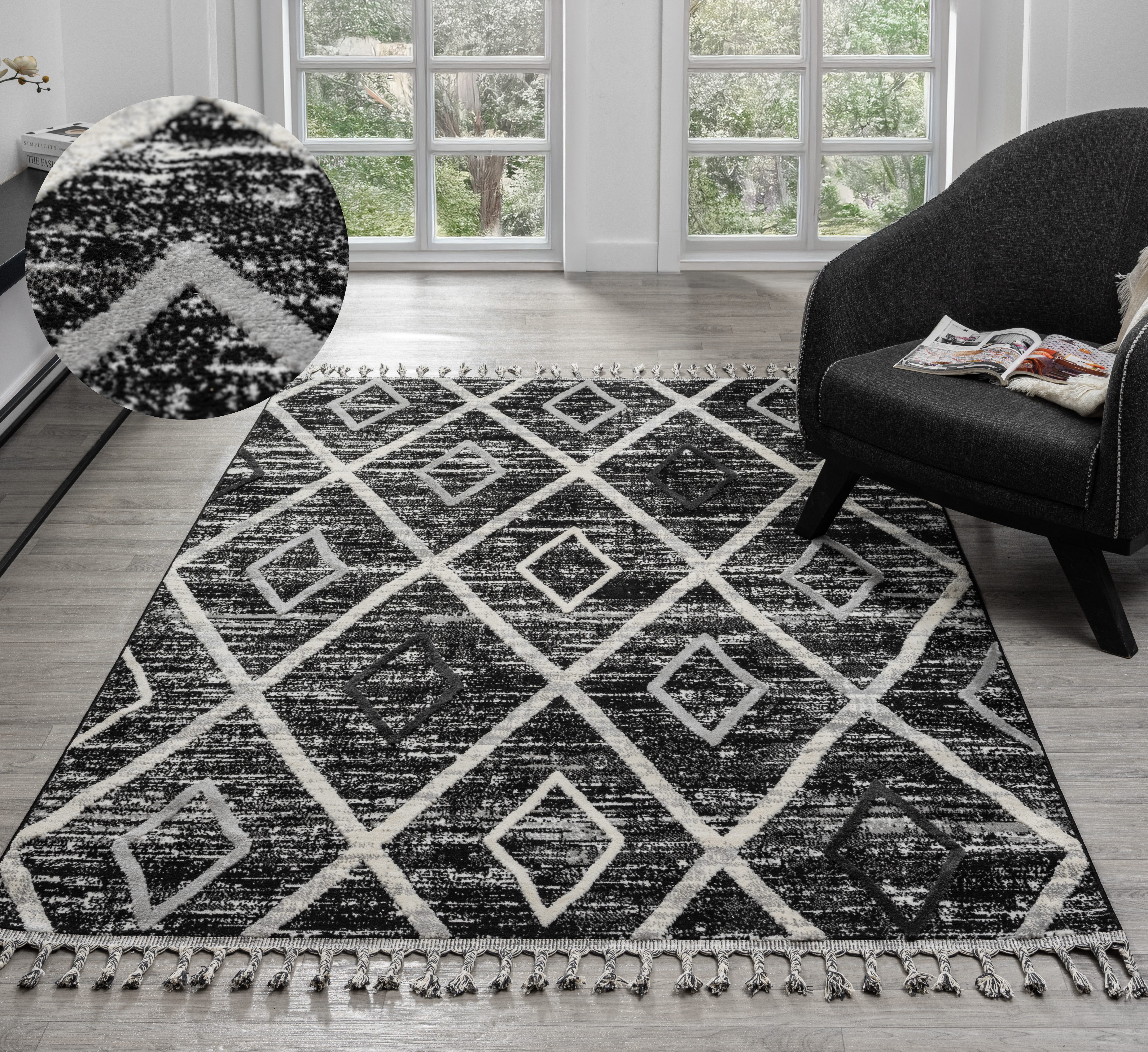 Er hat eine geringe Schmutzhaftung dank der strapazierfähigen Kunstfaser. Dadurch kannst du ihn als ein attraktives Multi-Talent nutzen. Das Material ist zudem unempfindlich. Die Auslegeware ist nämlich dank ihrem Flor von 11 mm wenig anfällig für Schmutz oder Staub, was sie zu einem leicht händelbaren Wohnaccessoire macht. Auch bringt der gewebte Teppich bei Laminat oder Fliesenboden an den richtigen Stellen eine wärmende Basis in deinen Raum. Er verringert den Trittschall, was auf vielen Böden einen hörbaren Unterschied macht.