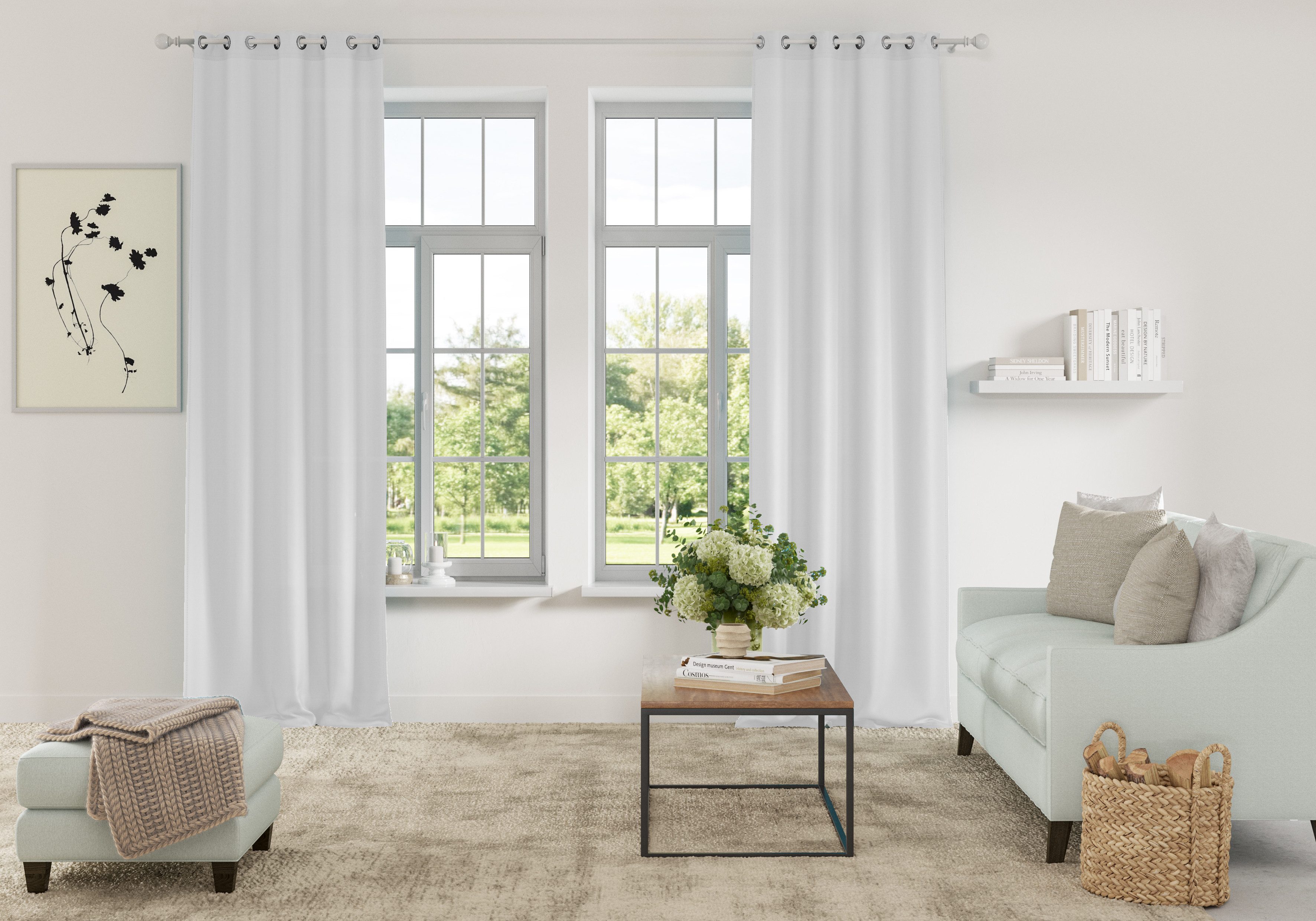 Hinweis Dekoration | Am Fenster fertig dekoriert, reduziert sich die Breite um ca. die Hälfte. Die angegebenen Maße sind Stoffmaße. |
