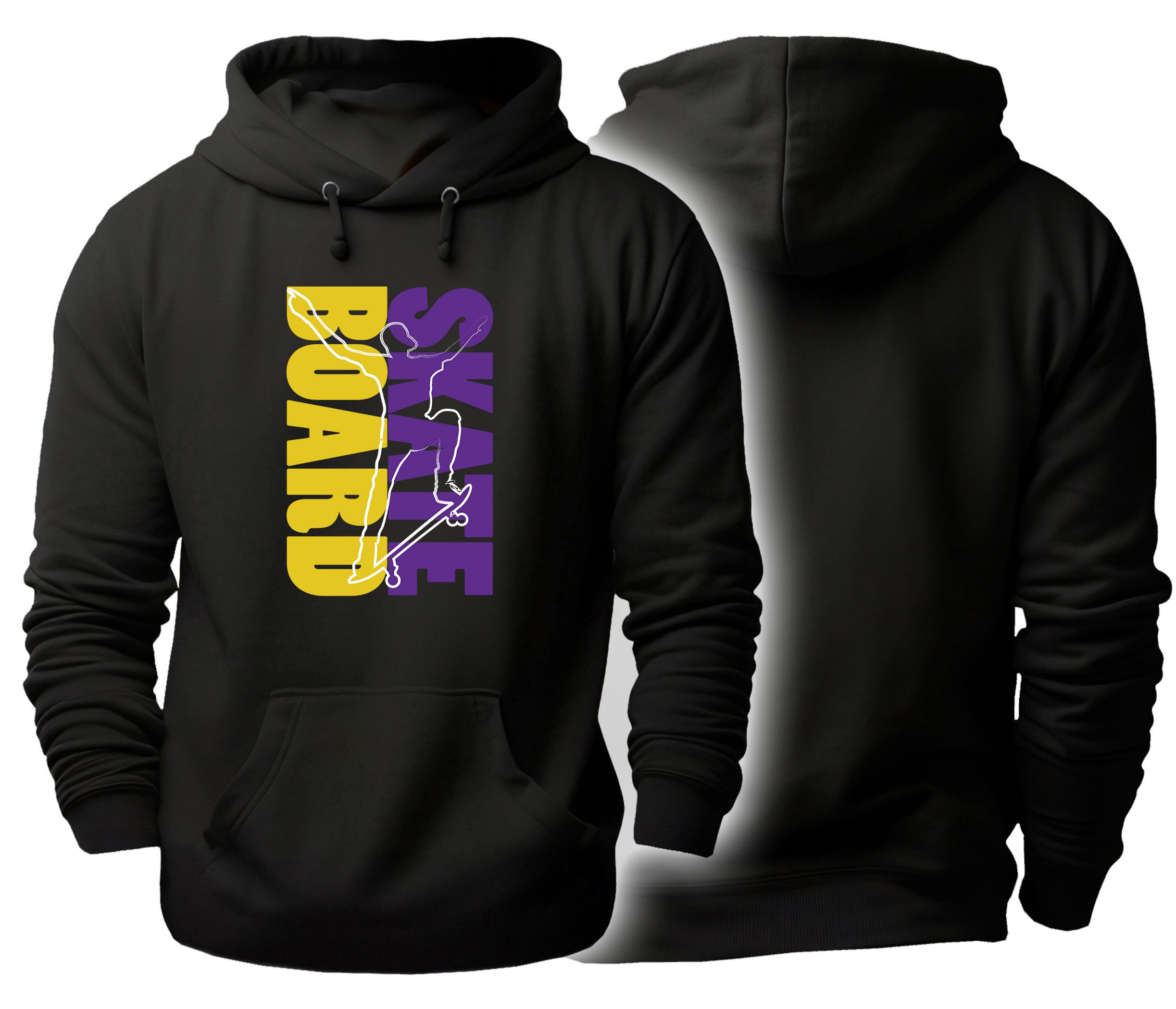 Stylischer Hoodie mit auffälligem Skateboard-Print in Gelb und Lila – der sportlich-lässige Look für alle, die Streetstyle, Freiheit und Bewegung lieben.