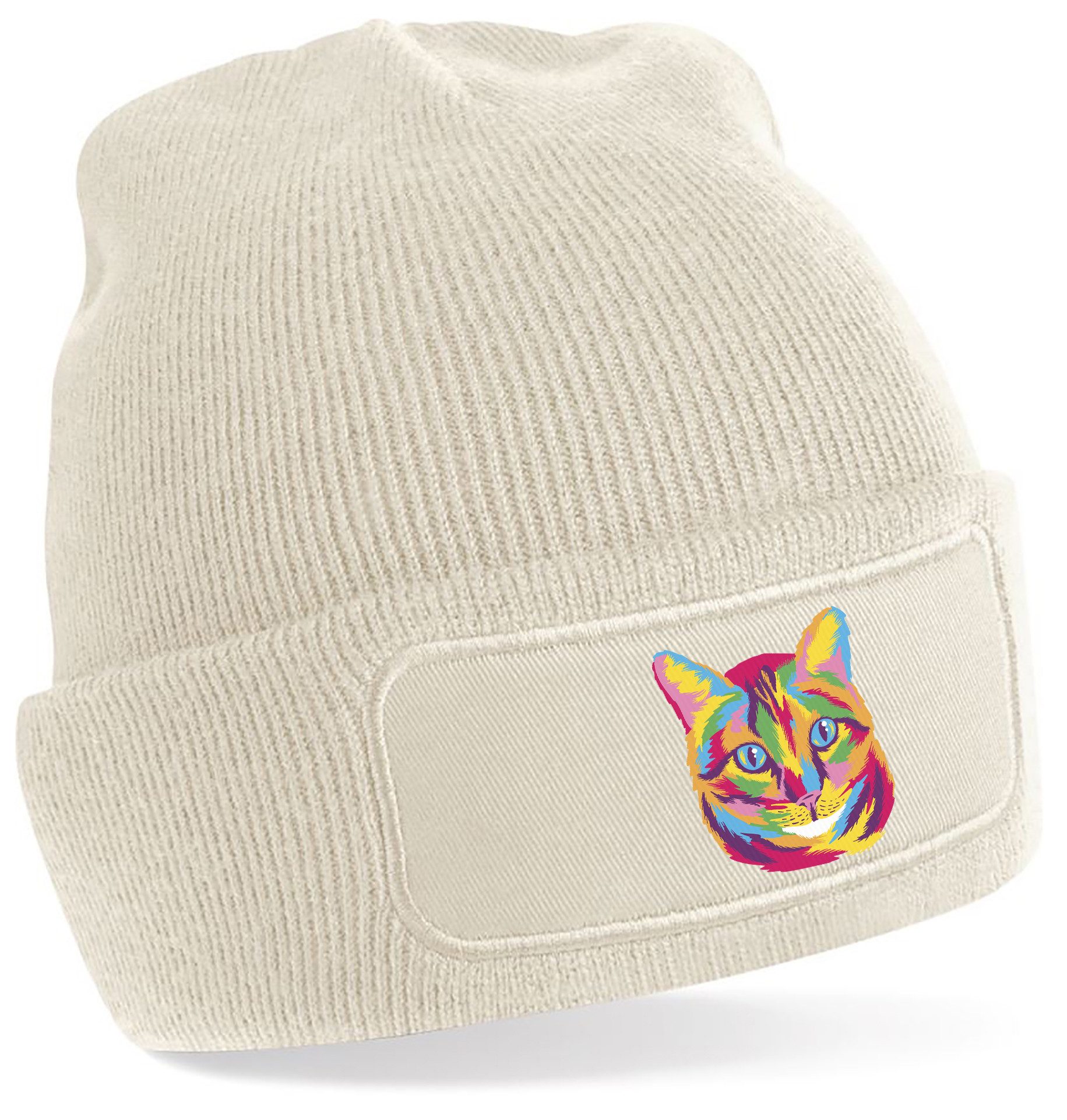 Doppelt gestrickt mit breitem Umschlag für optimalen Schutz vor Kälte, während das auffällige Katzenmotiv jedes Outfit mit kreativer Note bereichert.