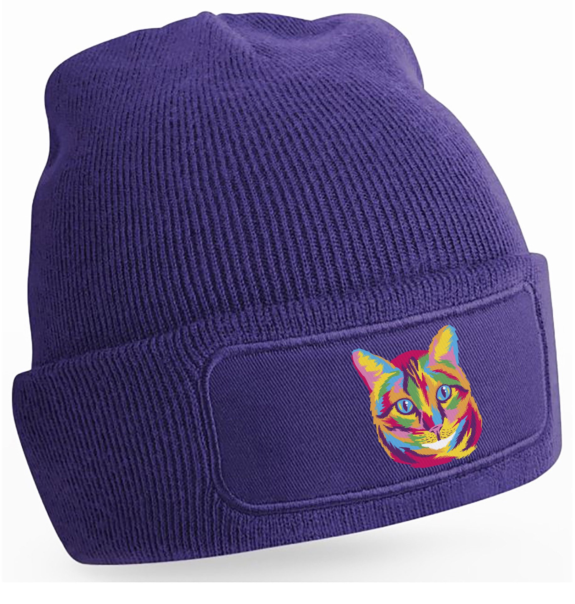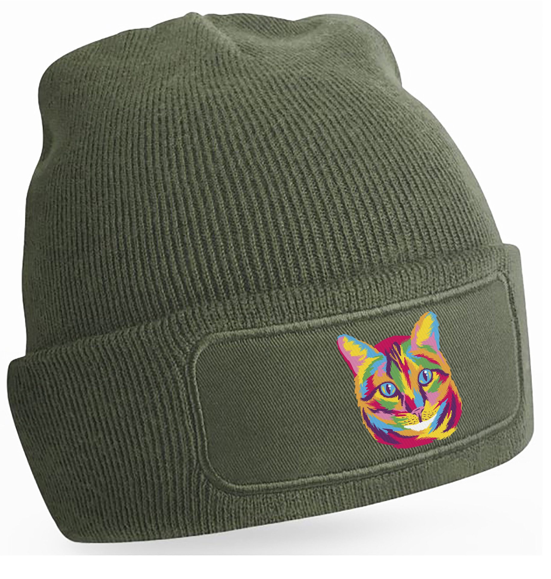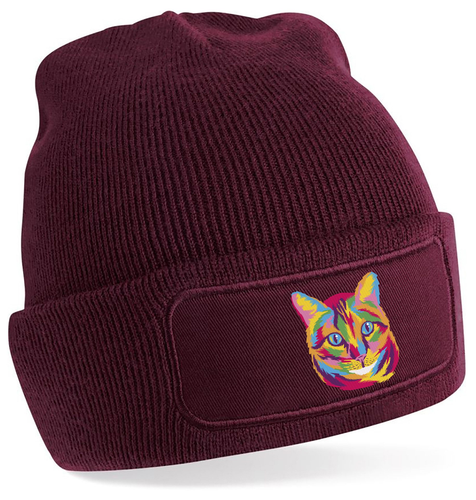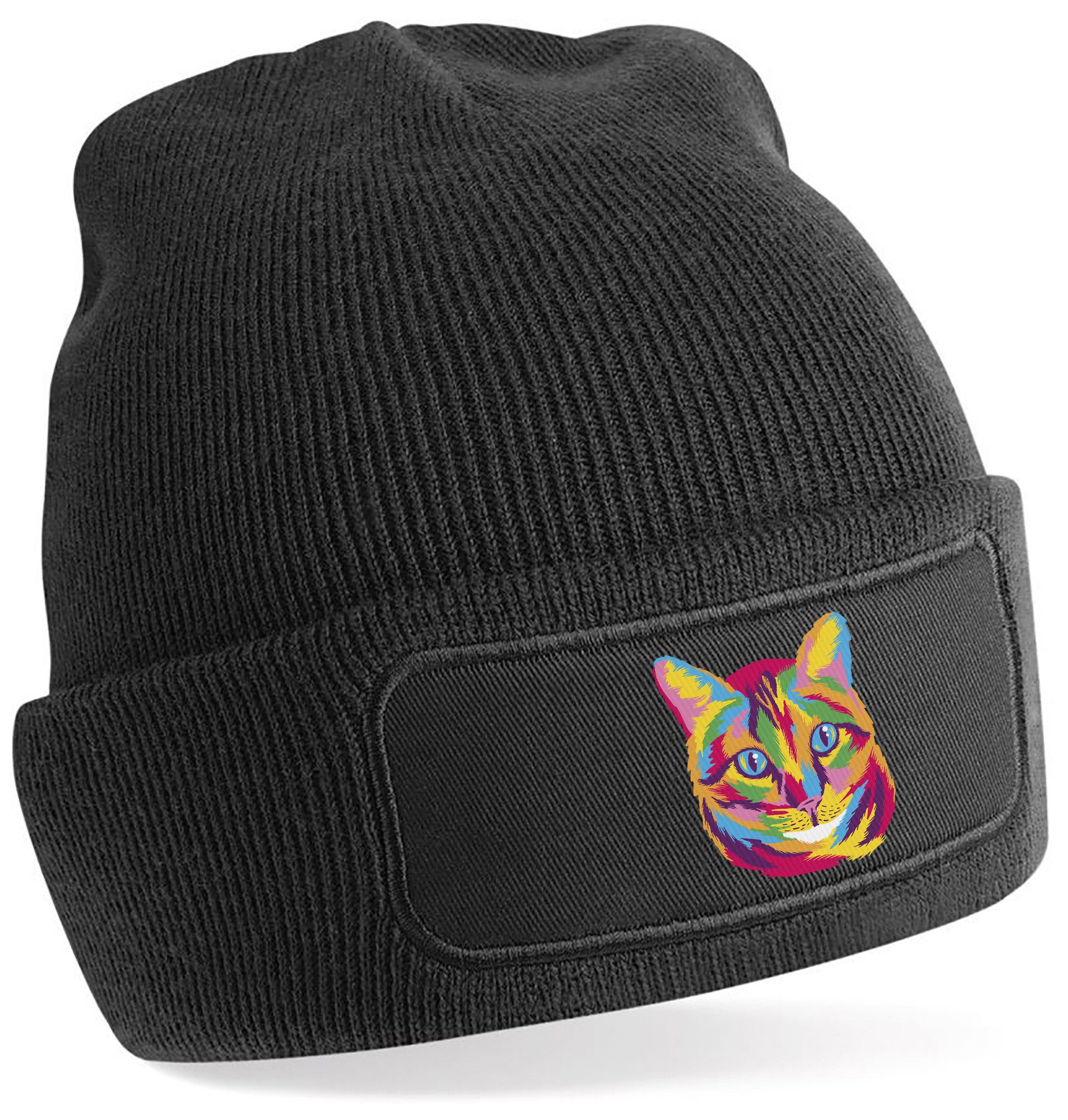 Stylisches Modeaccessoire mit kunstvollem Katzenmotiv, das auffällt und Wärme spendet – ideal für den Winter und als Geschenk für Tierliebhaber.
