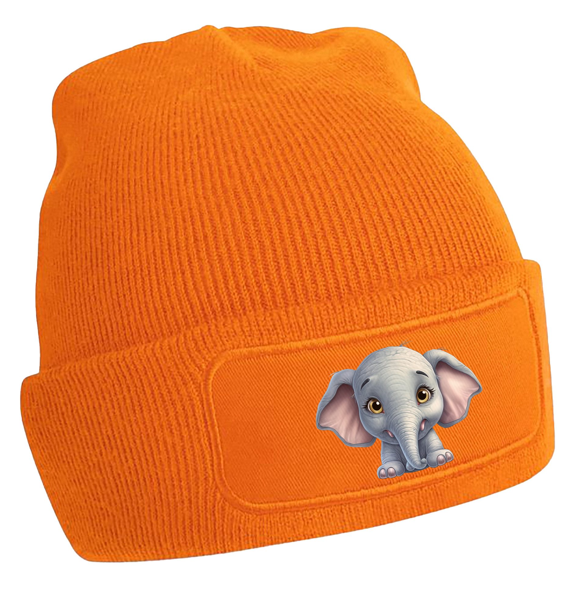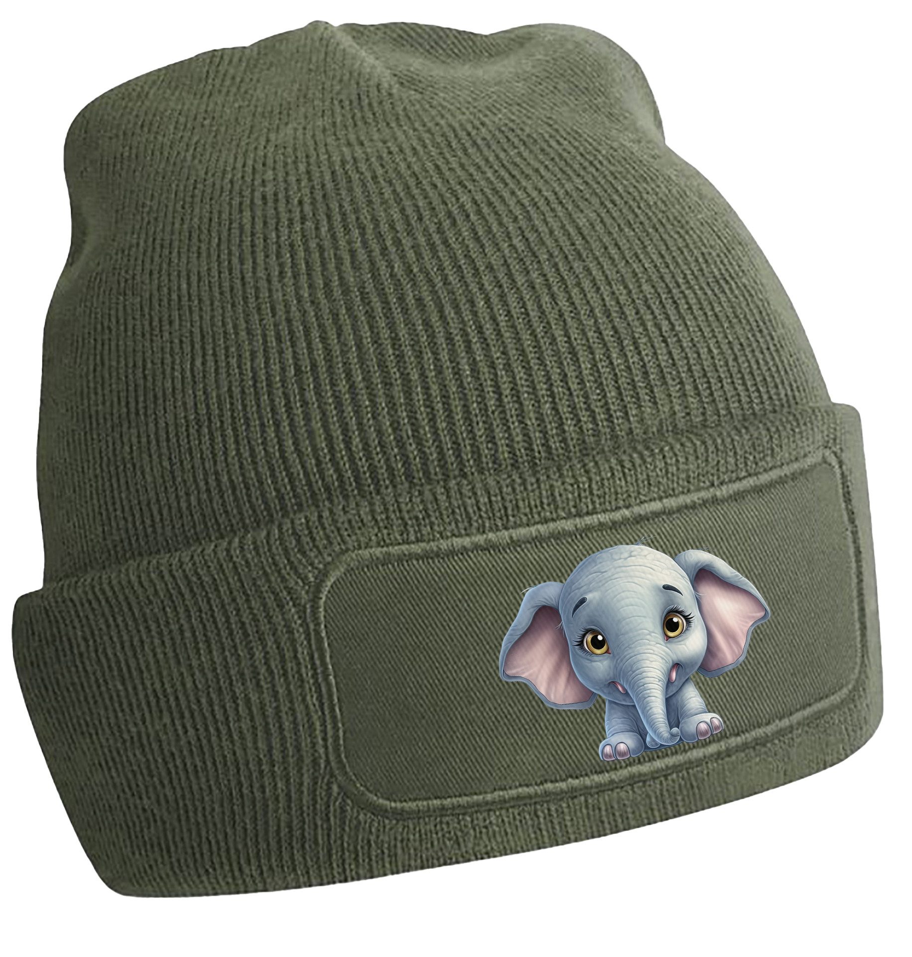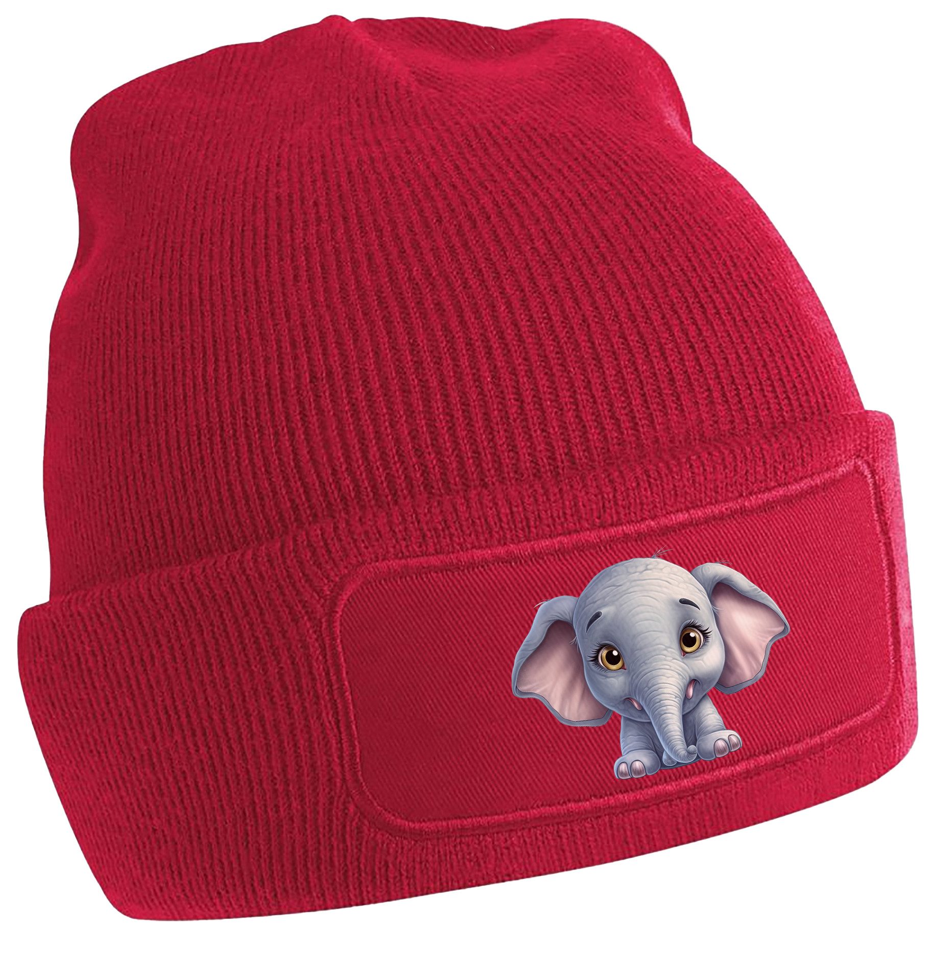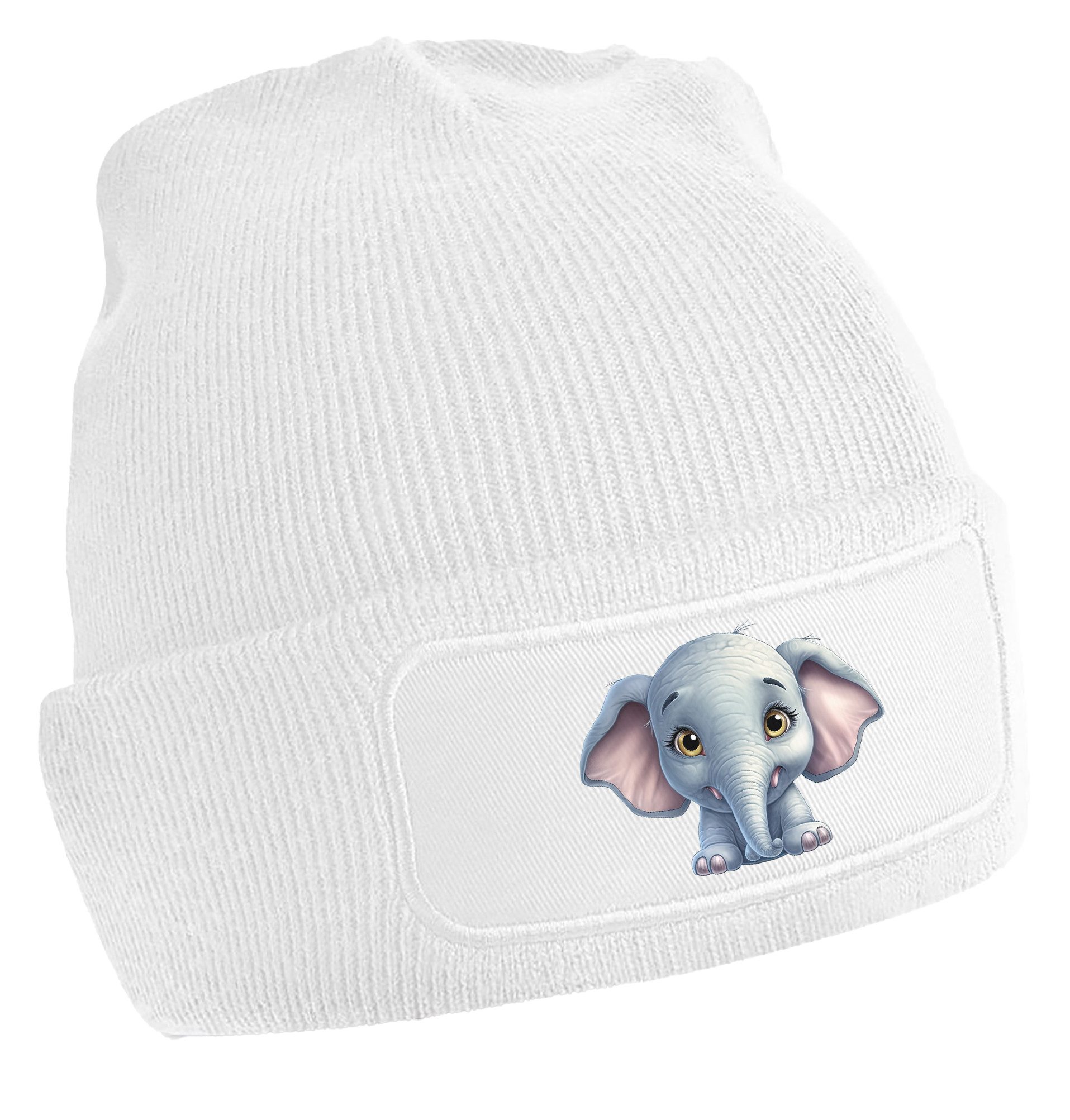 Wärmende Strickmütze mit süßem Baby-Elefanten-Print, doppelt gestrickt für extra Wärme und mit breitem Umschlag für eine bequeme Passform an kalten Tagen.