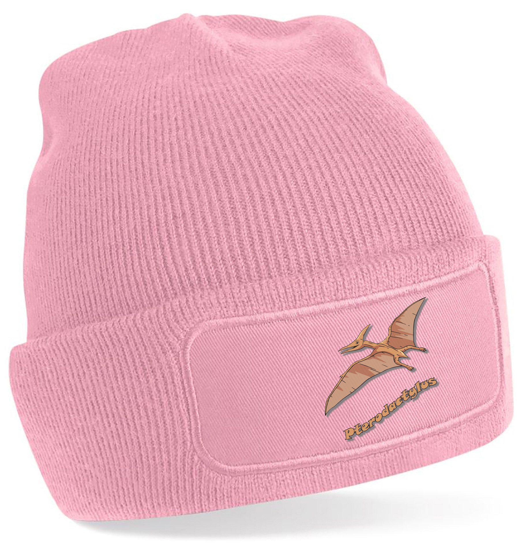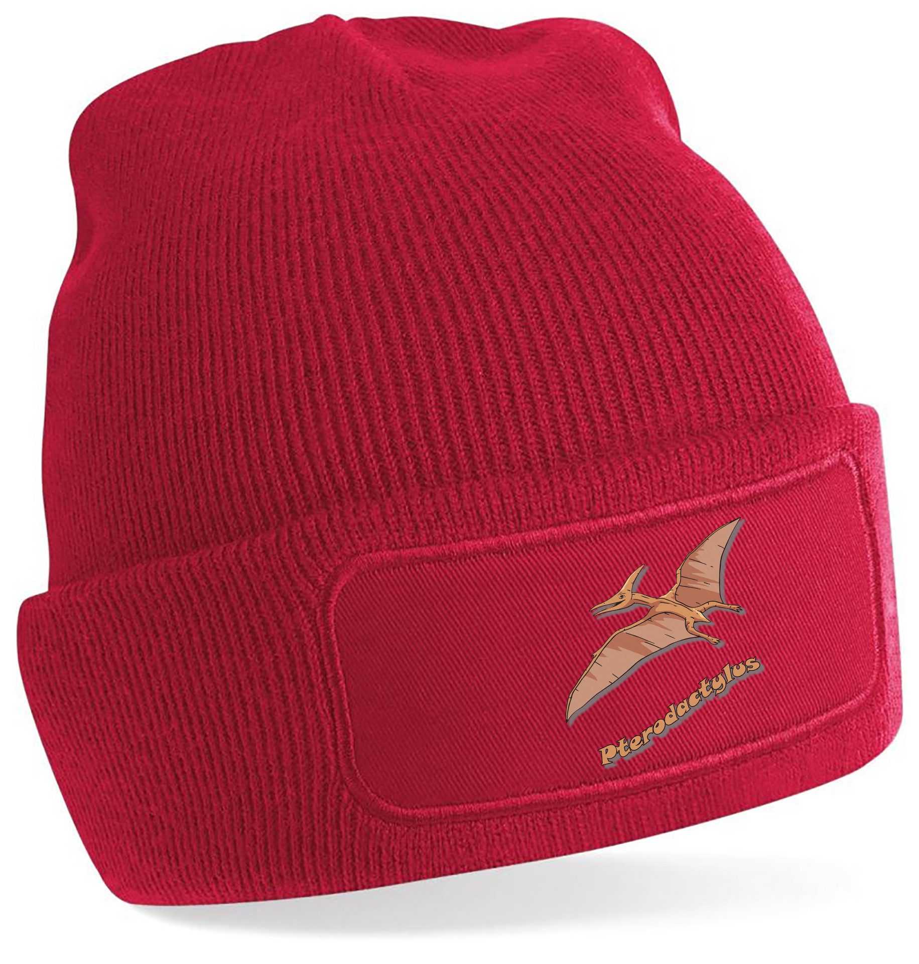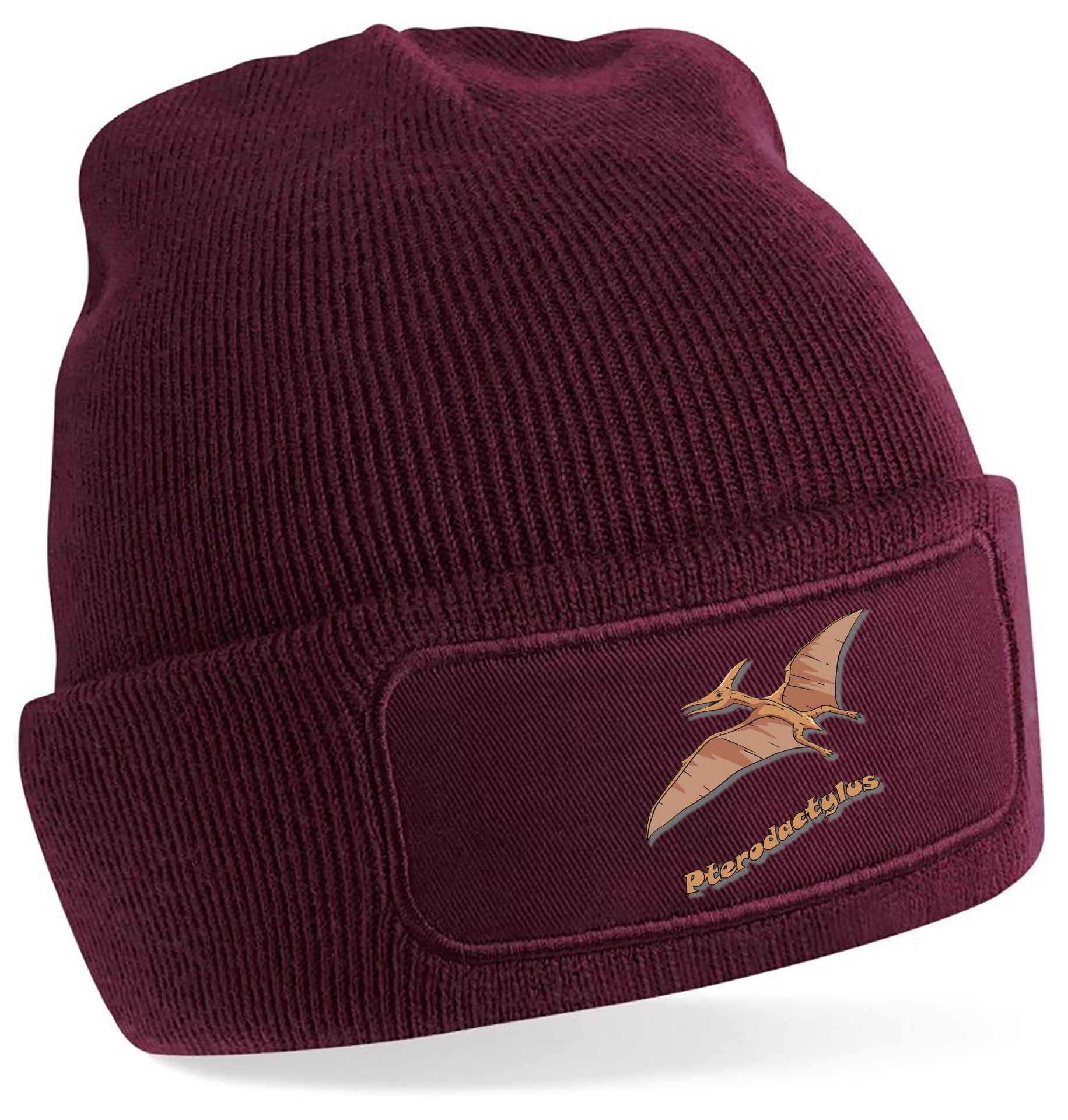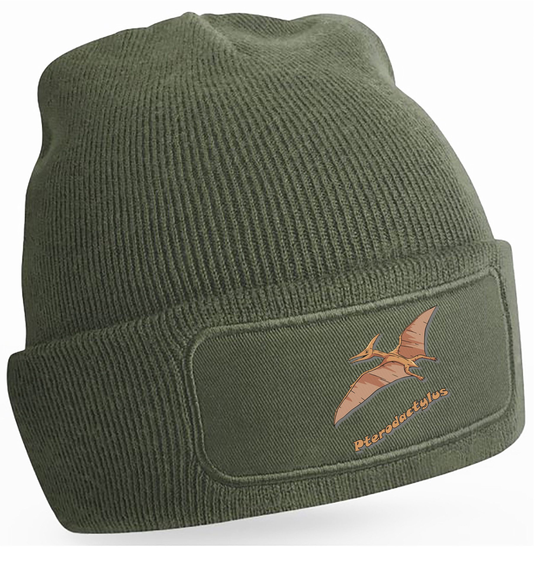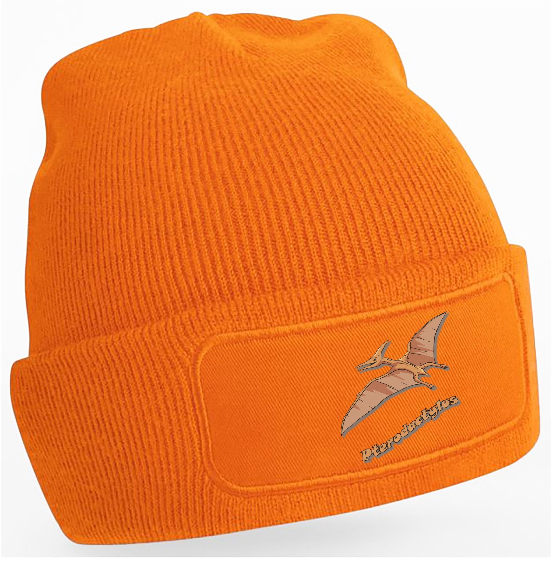 Perfekt für kalte Tage: Wärmende Strickmütze mit robustem Design, weicher Haptik und detailreichem Pterodaktylus-Patch – ideal als Geschenk oder Modeaccessoire.