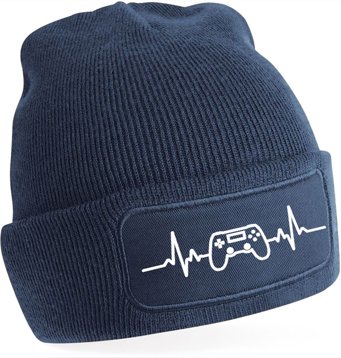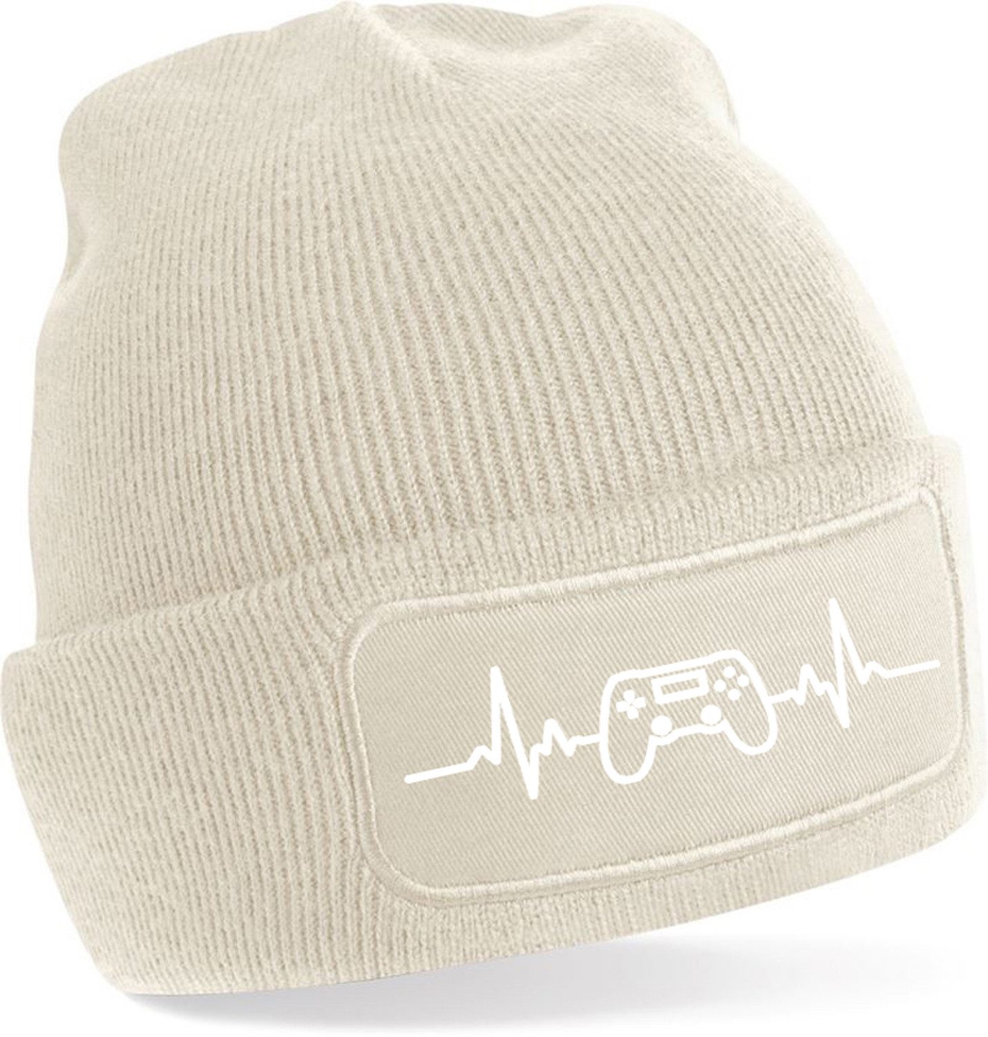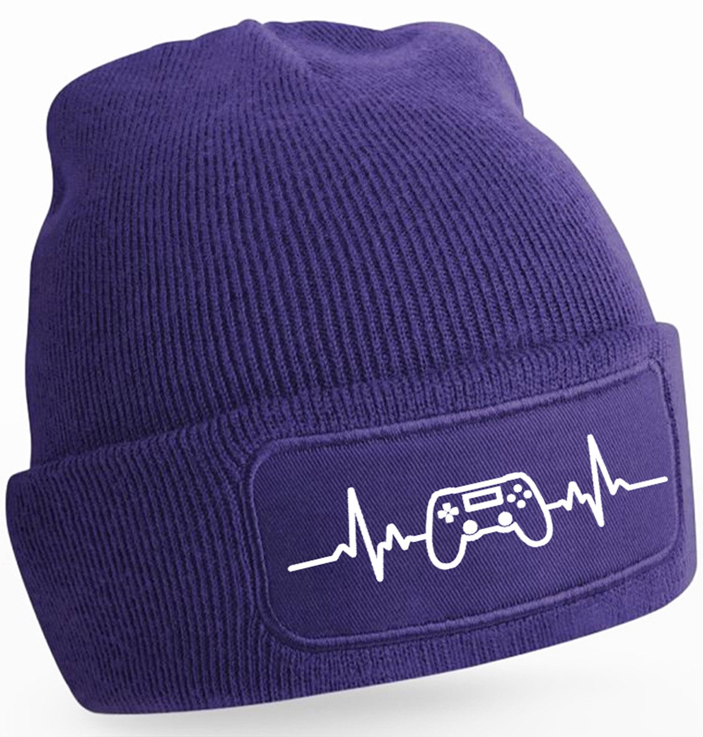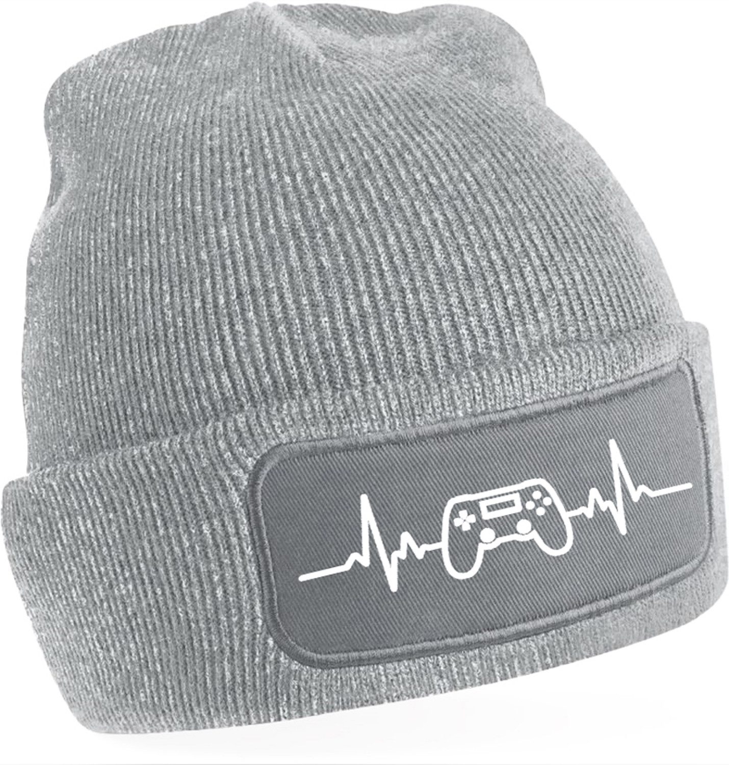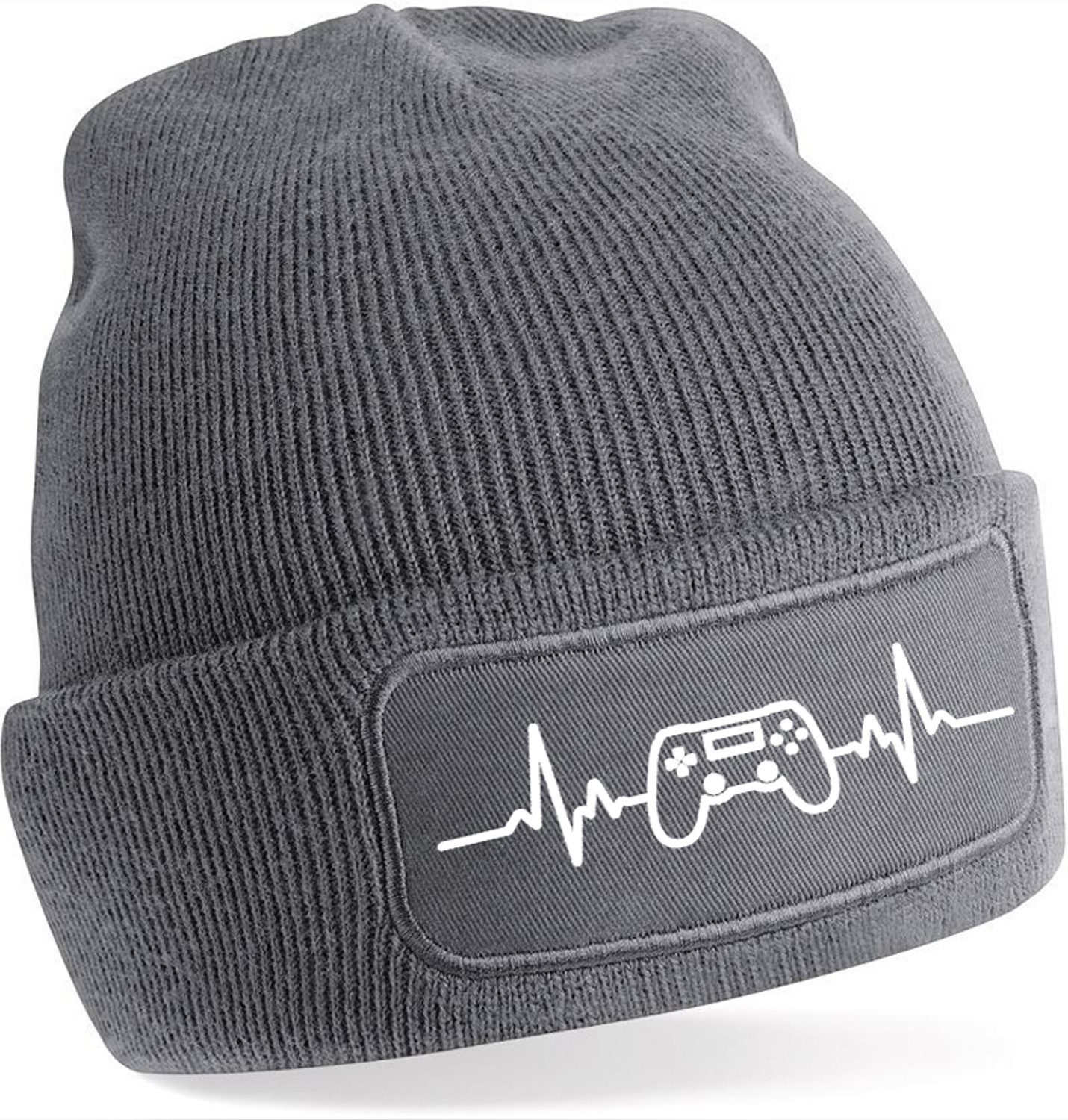 Stylische Strickmütze mit Herzfrequenz- und Gaming-Controller-Aufdruck – perfekt für alle, die Gaming lieben und ein modisches Statement setzen wollen.